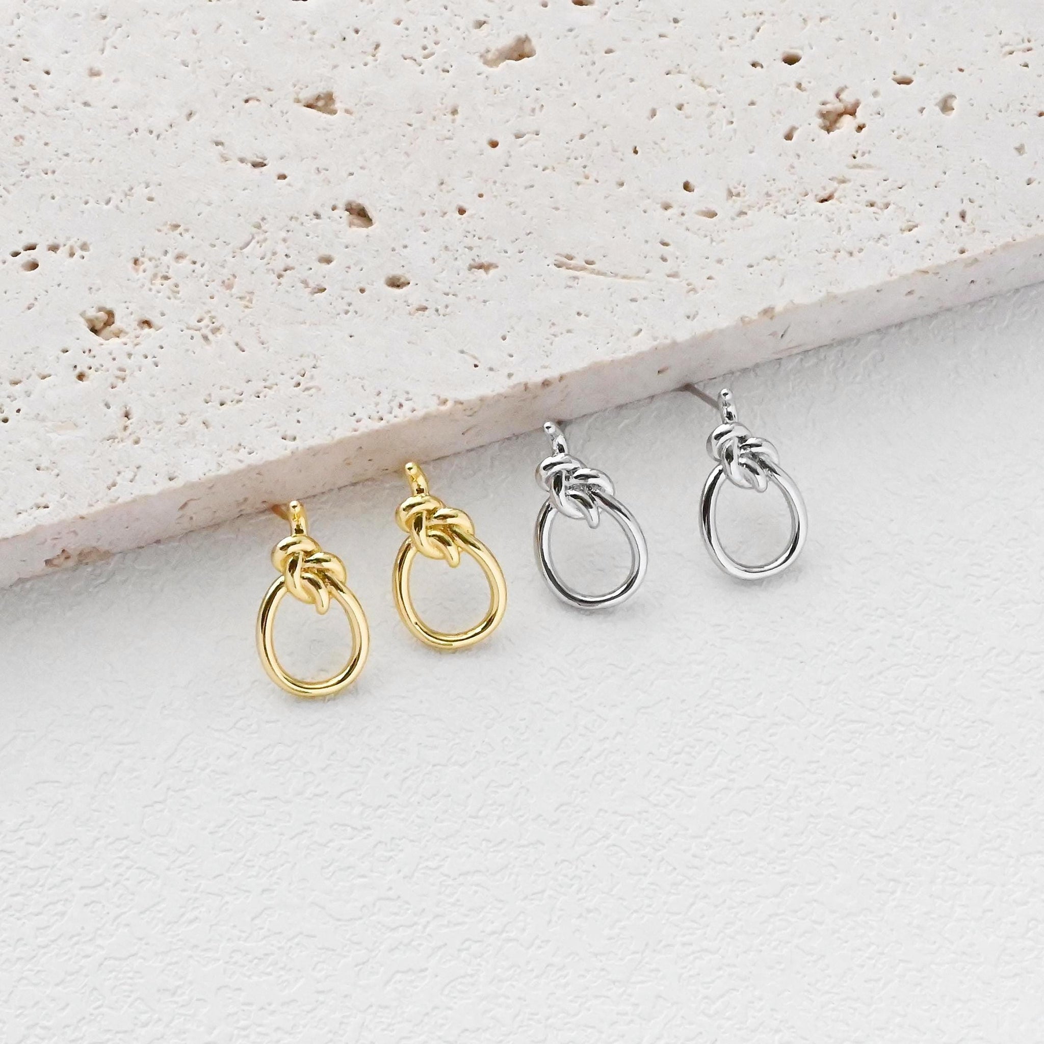 Poste para pendientes con nudo dorado, pasador para pendientes de plata S925, pendientes sin níquel, aro...