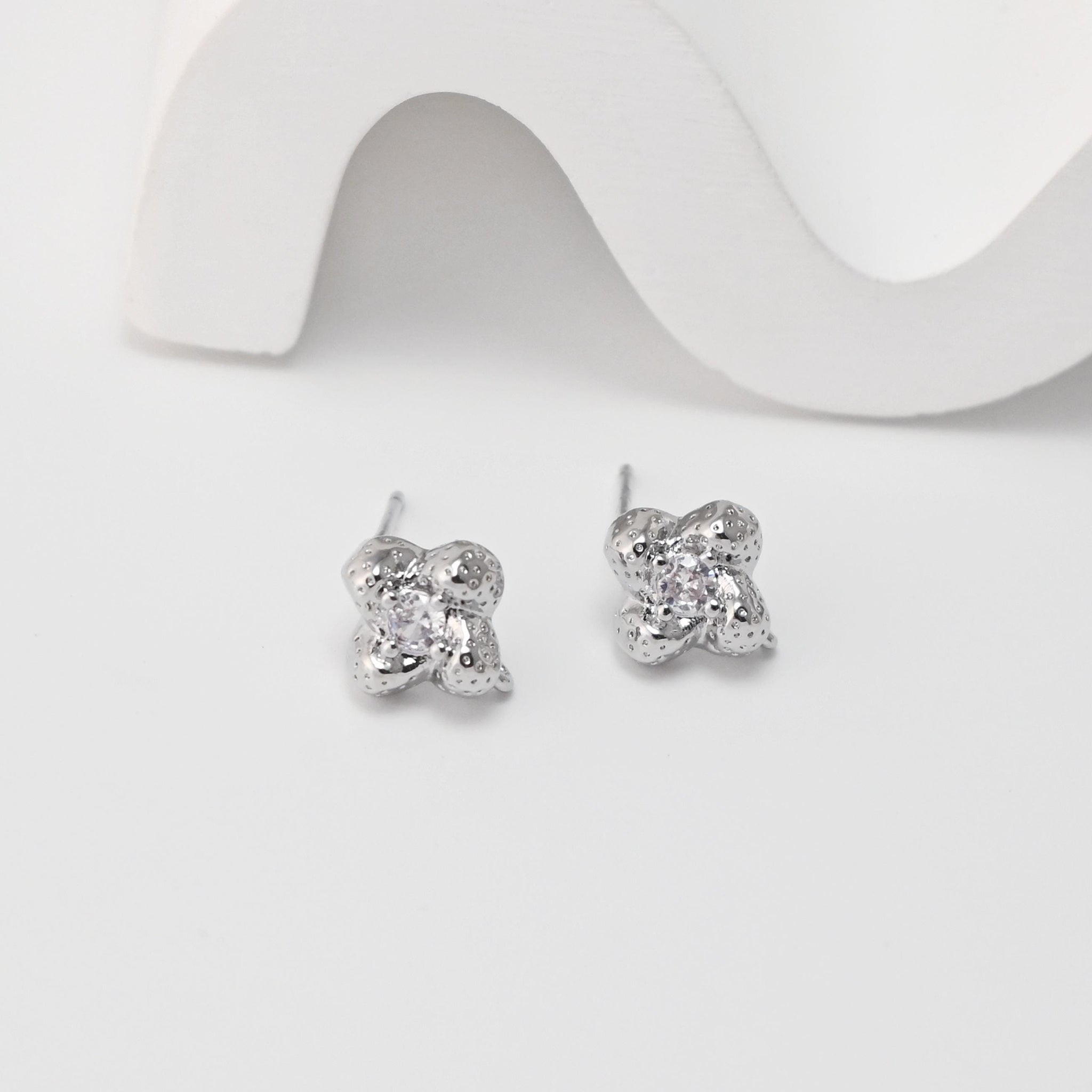 Pendientes de flor martillada con aro, chapados en oro de 18 quilates, sin níquel, pasador de plata S925, pavé de circonitas cúbicas, hipoalergénicos, D0410