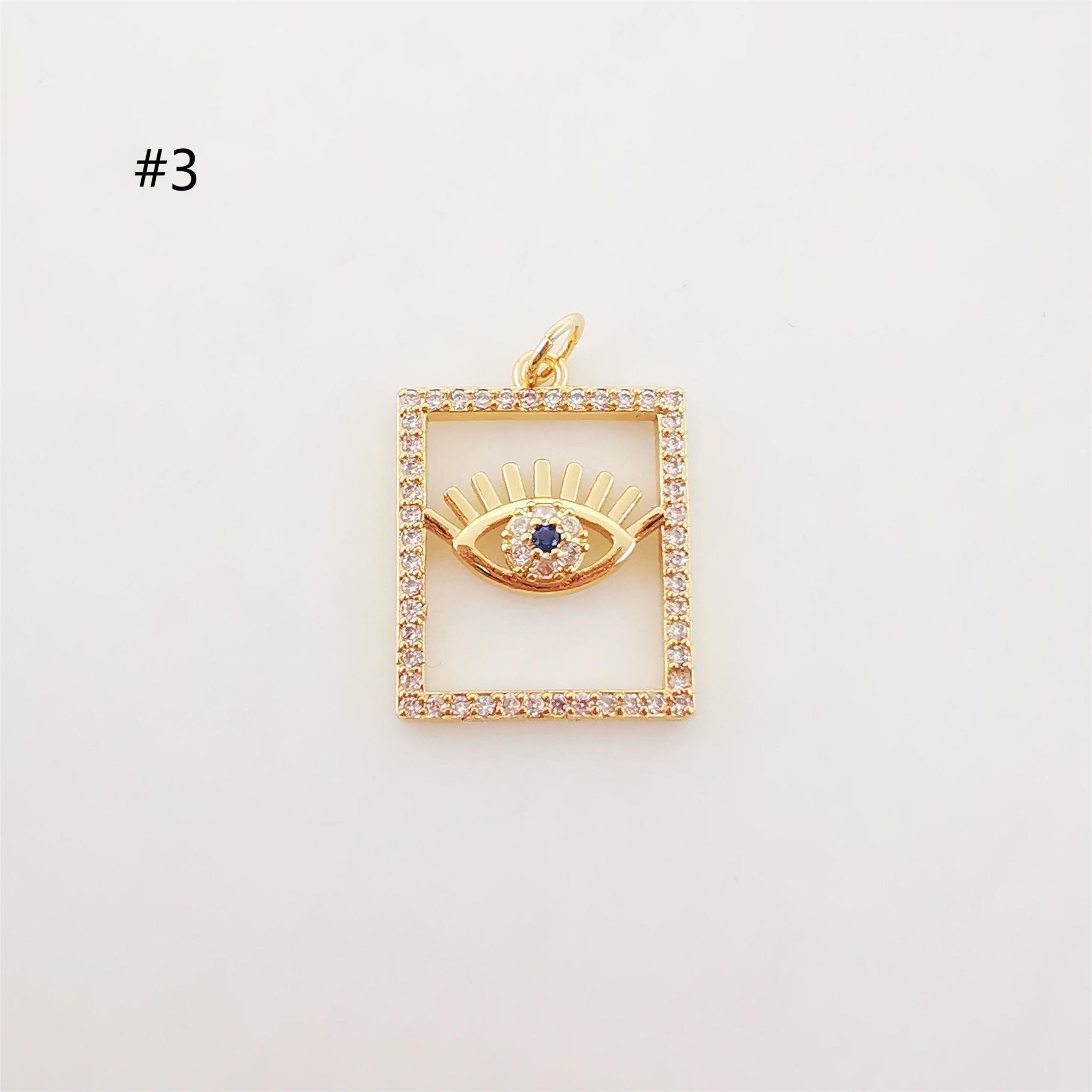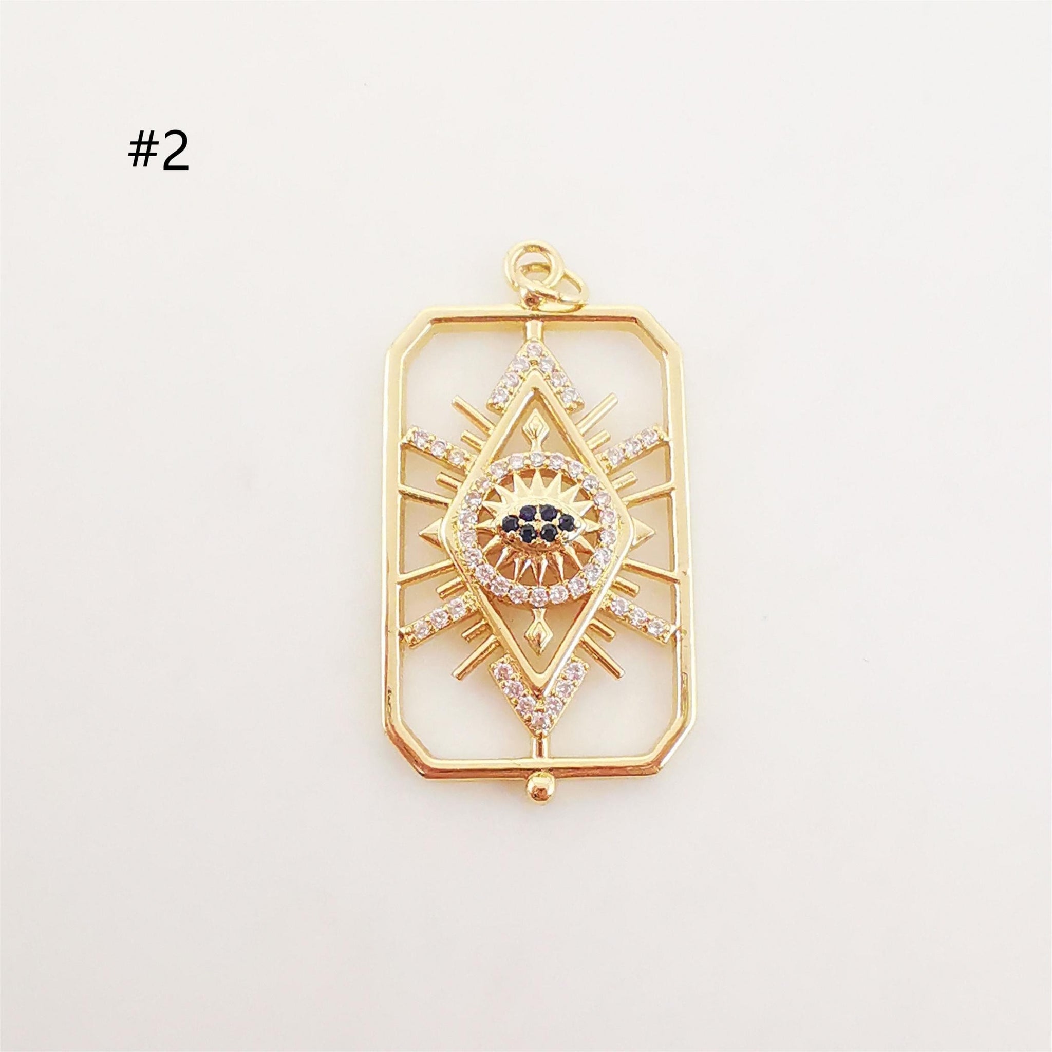 HogarHallazgos de pendientesDije rectangular de ojo turco cúbico, chapado en oro de 18 quilates con micro circonitas pavé, ideal para hacer collares, accesorios de joyería S20226