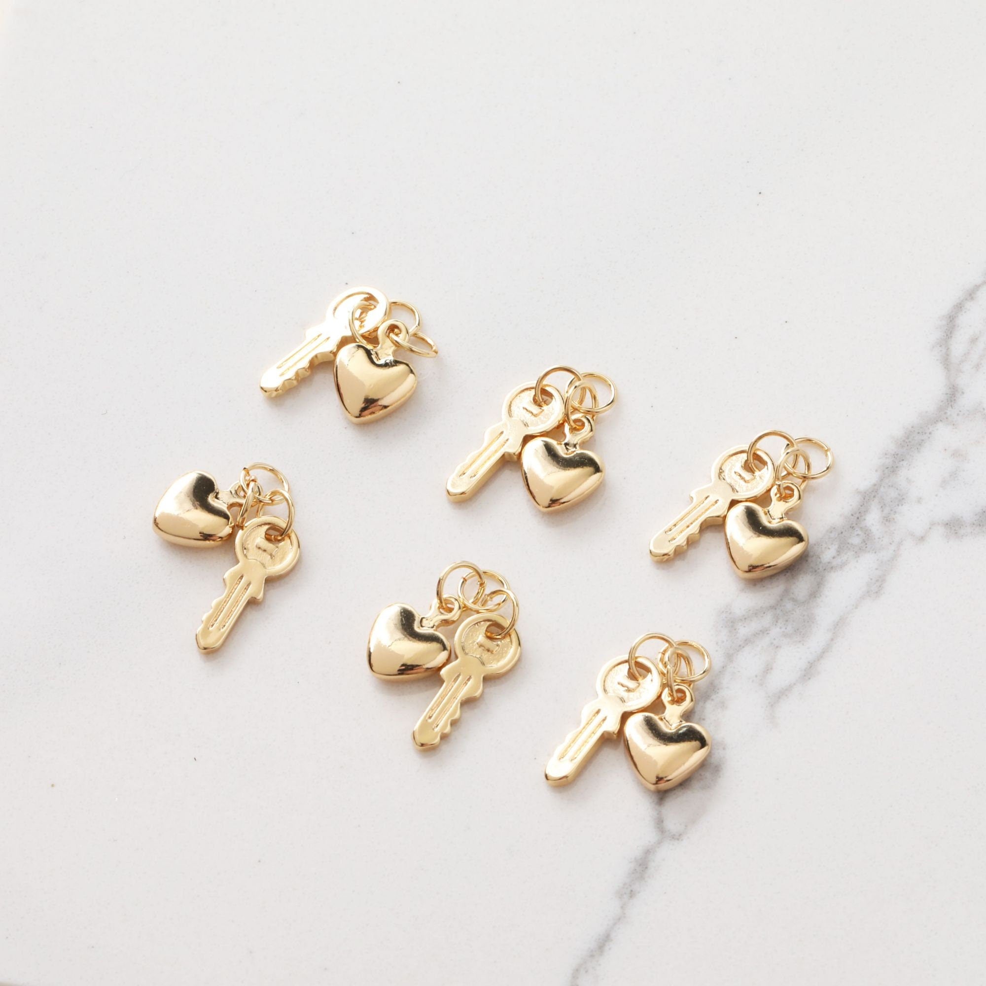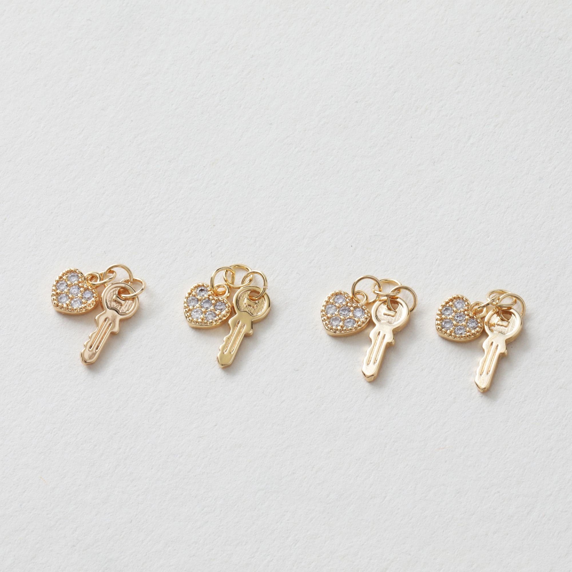 Dijes de medallón de corazón brillante, chapados en oro de 18 quilates, colgante de llave, colgante de amor, colgantes para hacer collares, accesorios de joyería JG011