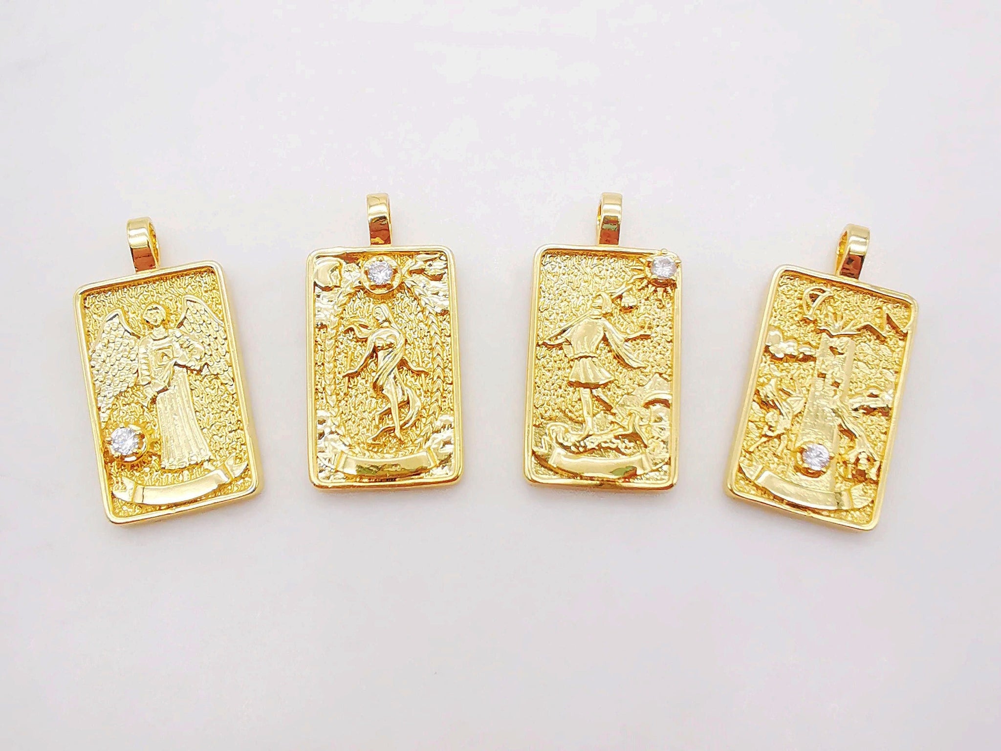 Colgante de carta del Tarot, chapado en oro brillante de 18 quilates, para hacer collares, 30...