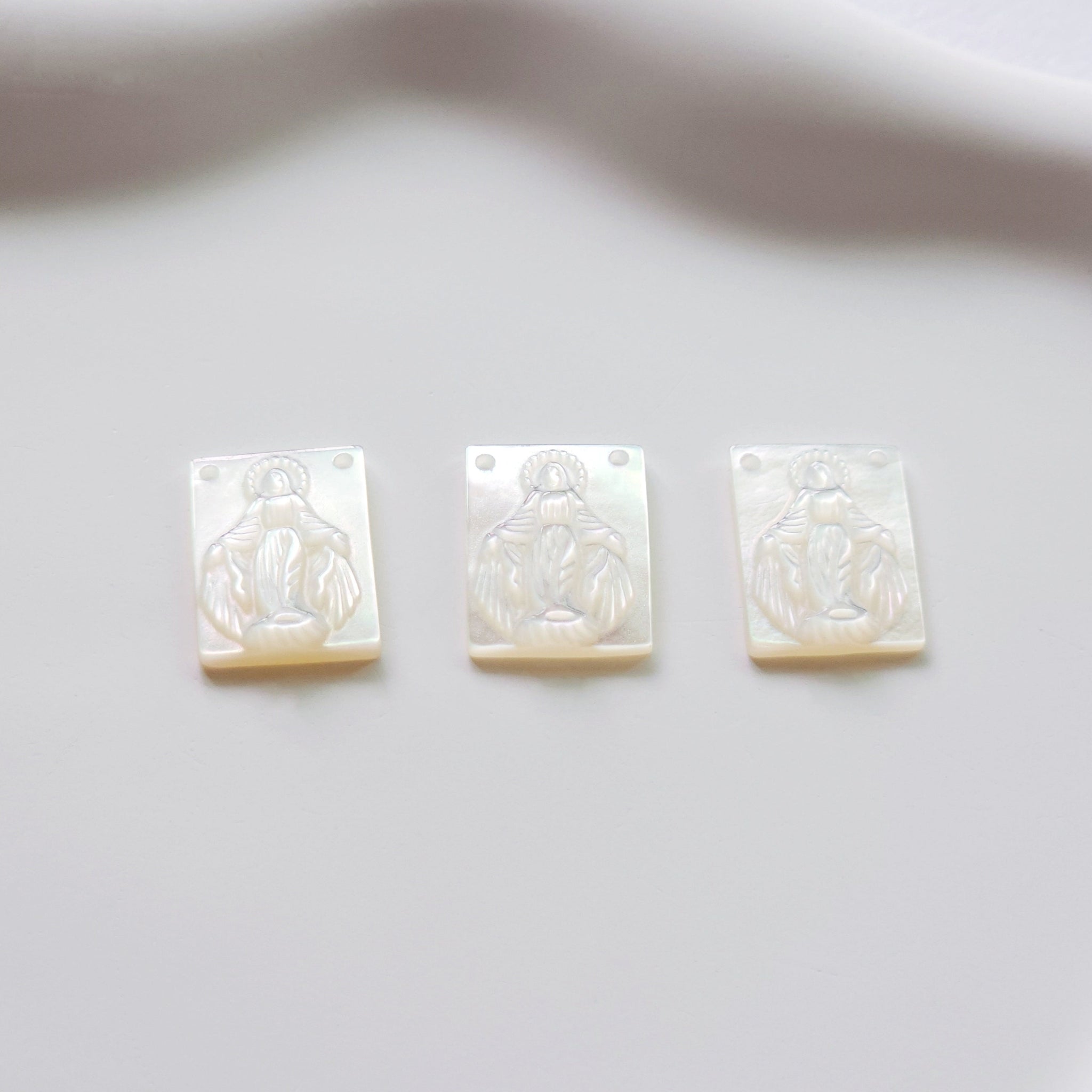 Colgante de concha de nácar blanco María, dije de concha de nácar blanco María grabado, accesorios de joyería de concha rectangular RY028