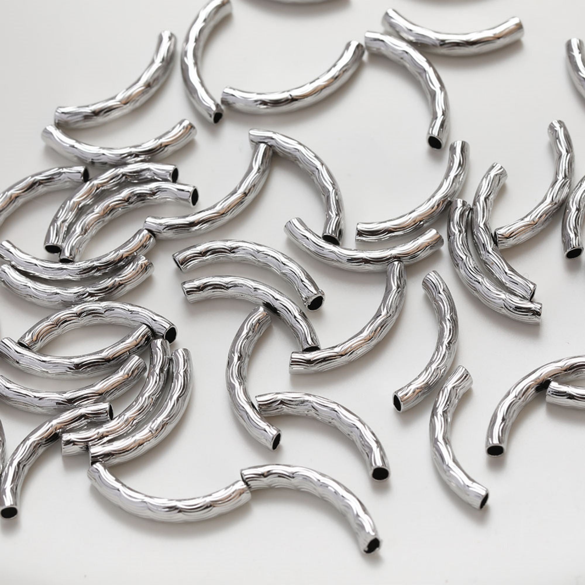 10 cuentas de tubo de bambú, cuentas espaciadoras curvas, cuentas de tubo curvas, chapadas en oro/plata de 14 quilates, para hacer pulseras y collares, accesorio de joyería GZ244