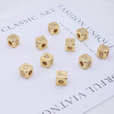 Cuentas cuadradas con números arábigos cúbicos de oro brillante de 18 quilates, micro pavé de circonitas cúbicas, 9 x 9 mm, con agujero grande para collares y pulseras S20593