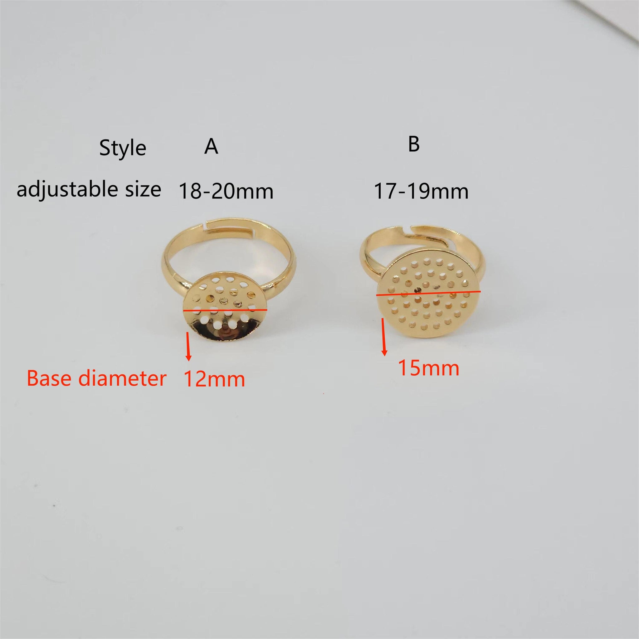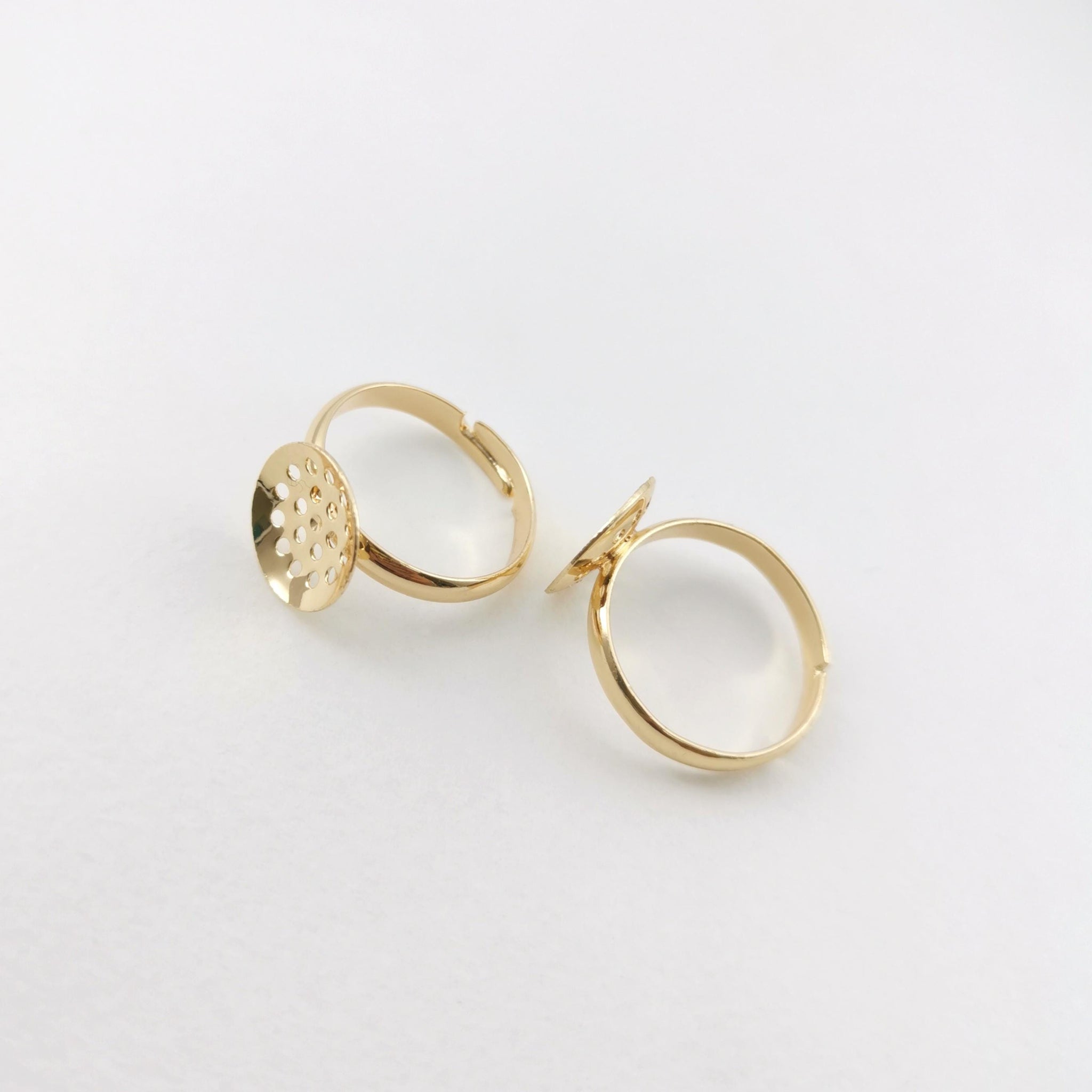 Anillo ajustable en blanco, copa con múltiples orificios, anillo sin terminar, engaste de cabujón redondo, oro de 14 quilates, base de anillo de plata, anillo minimalista ZX168