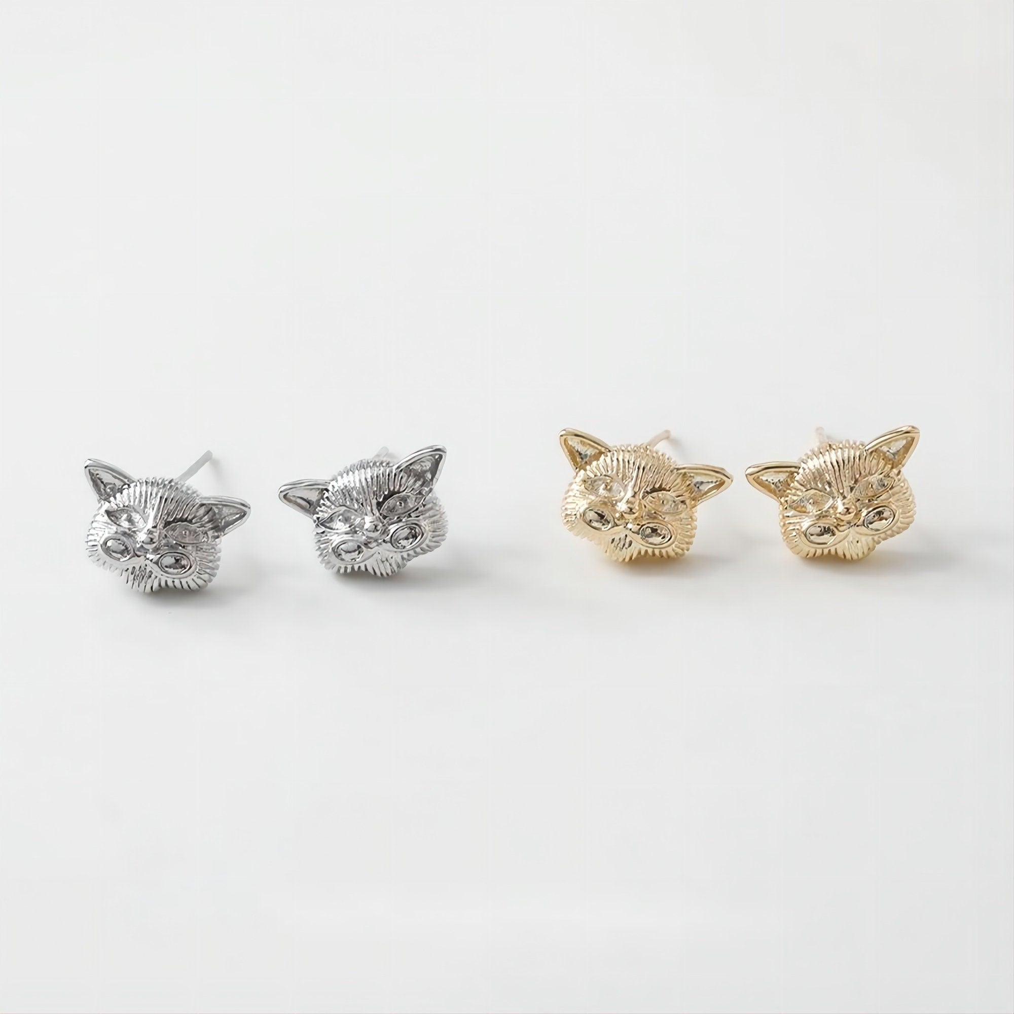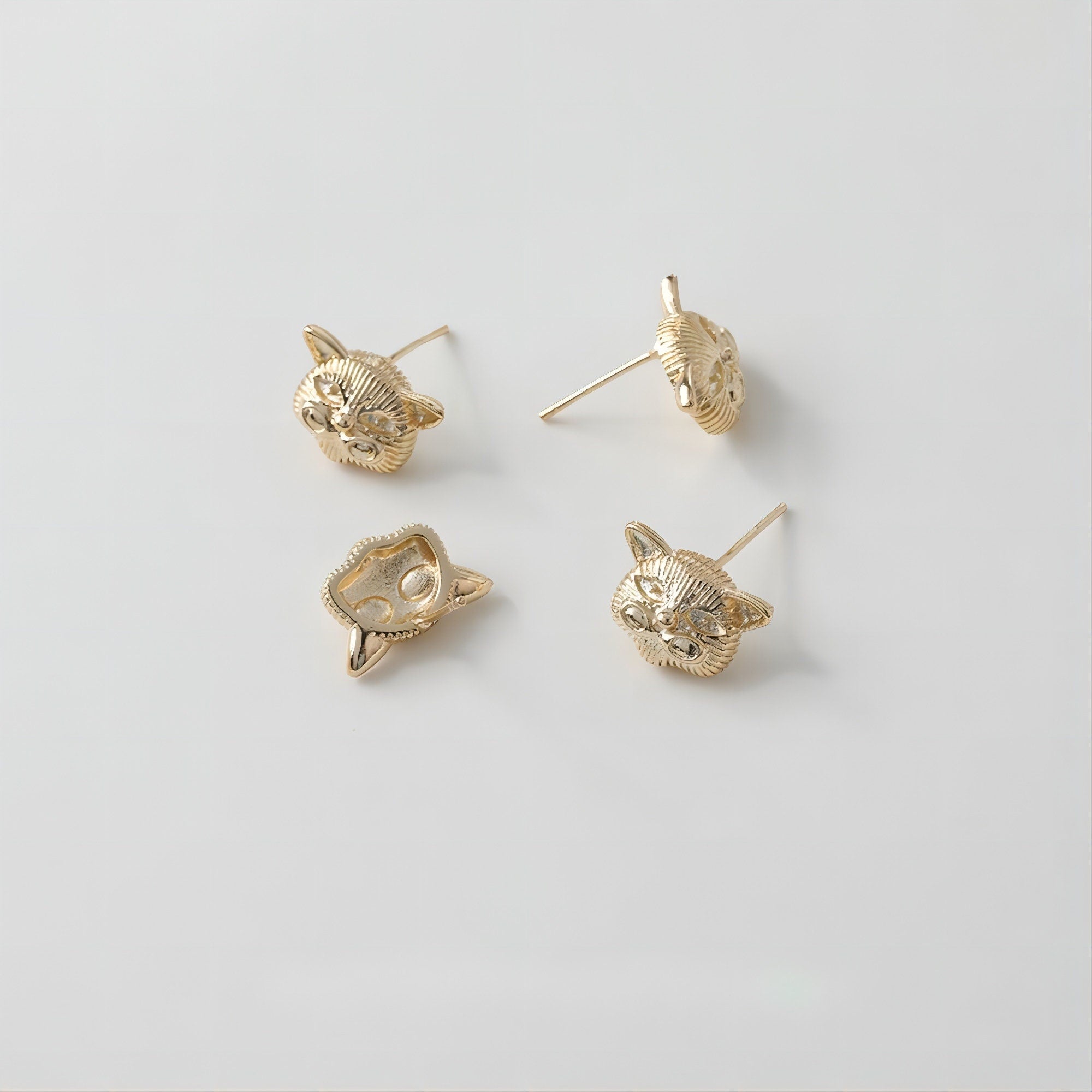 Pendientes de gato con pasador, oro/plata de 14 quilates, plata S925, sin níquel, con forma de animal y aro GE029