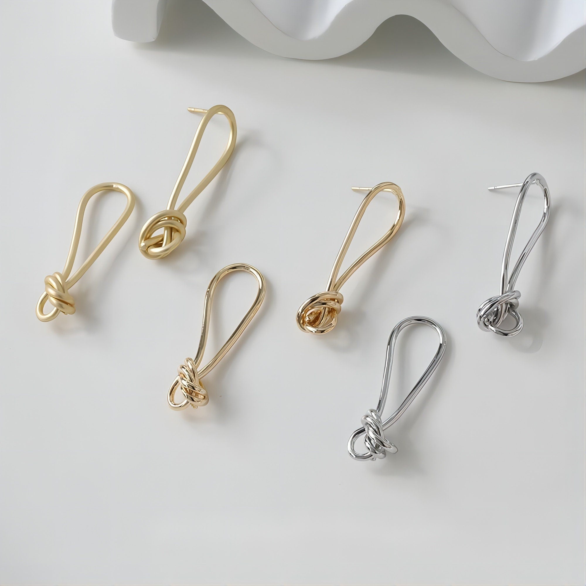 Pendiente de nudo dorado, pasador de plata S925, pendientes sin níquel, pendiente de botón de 18 quilates, accesorios para pendientes con nudo GE037
