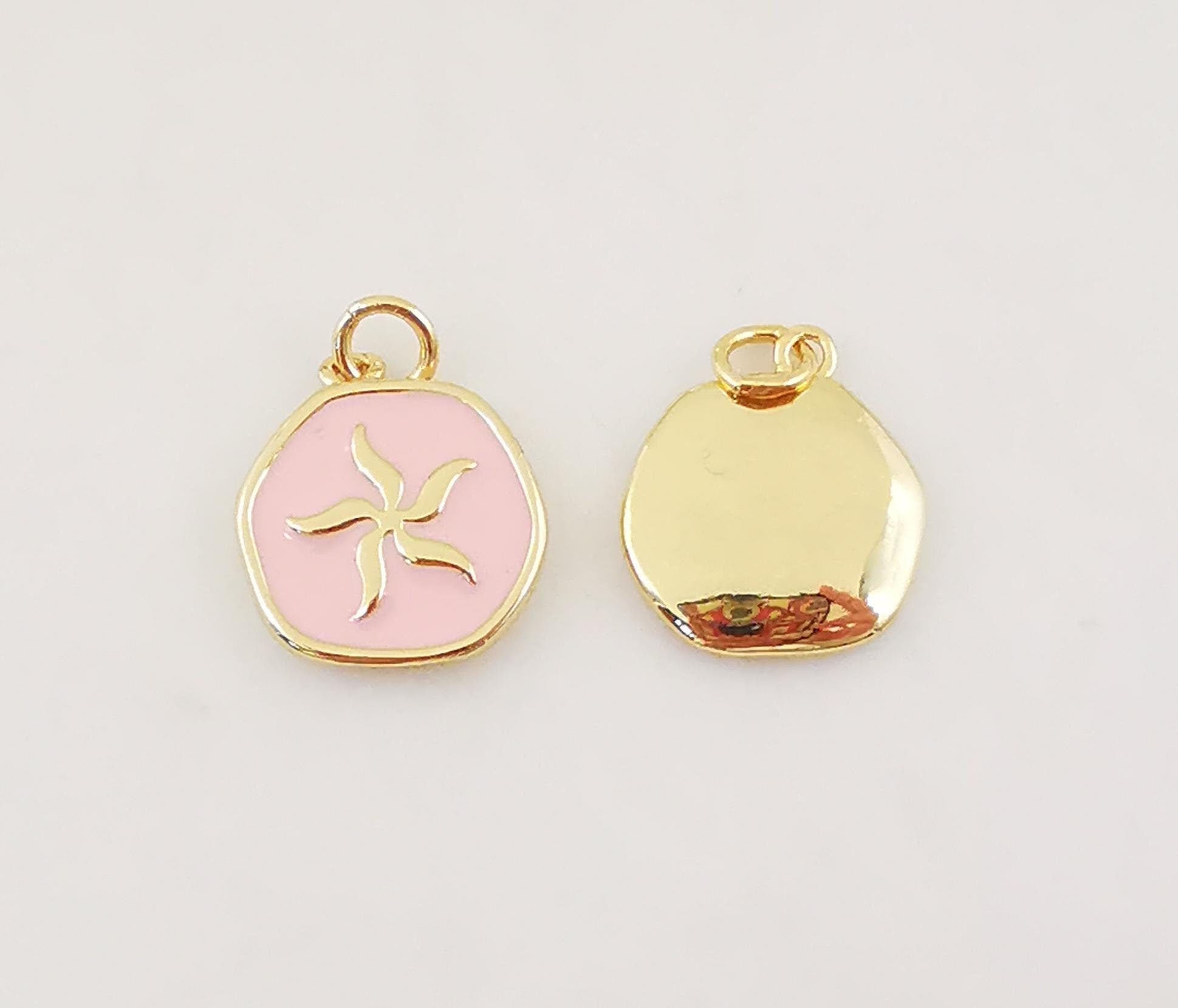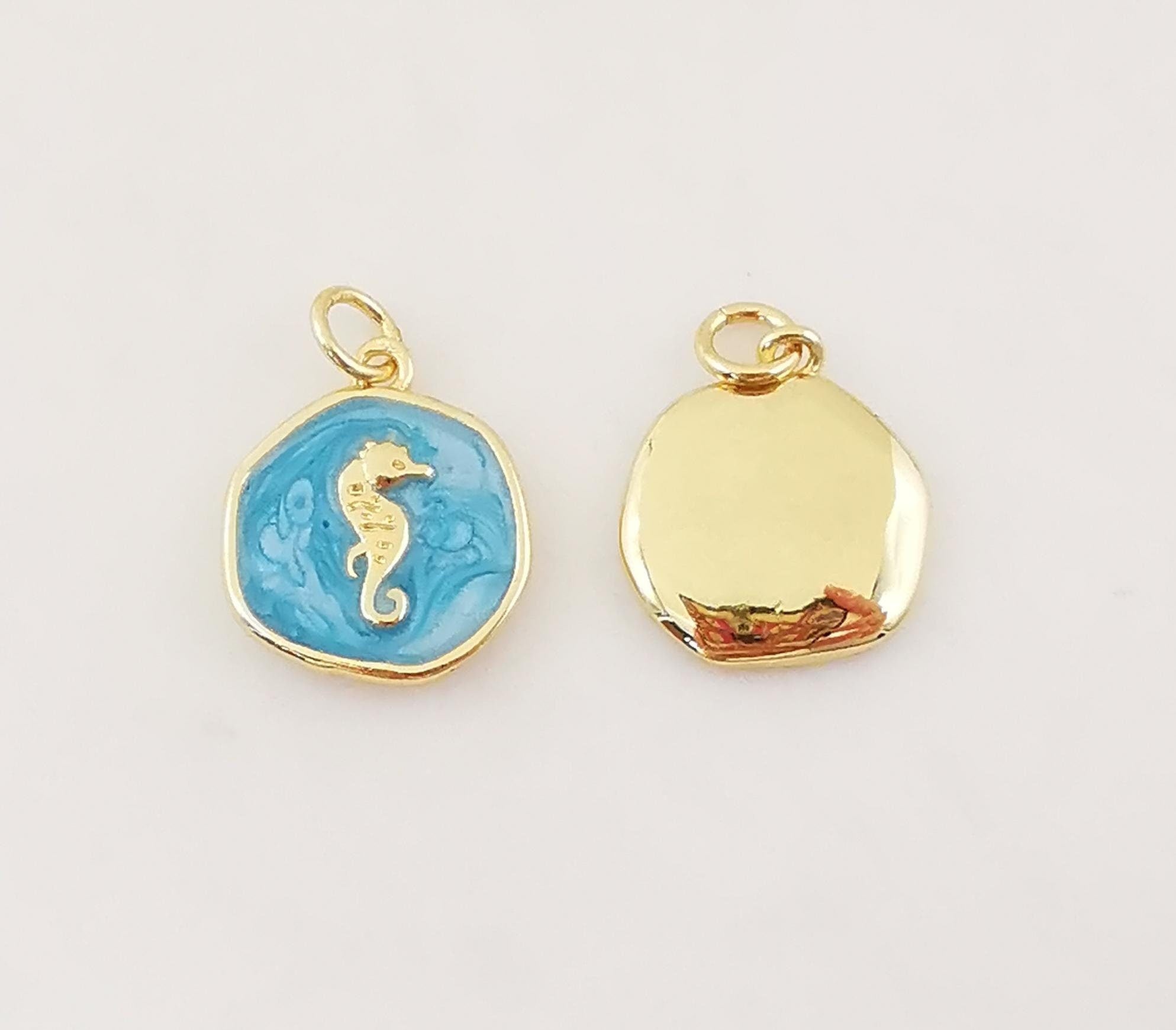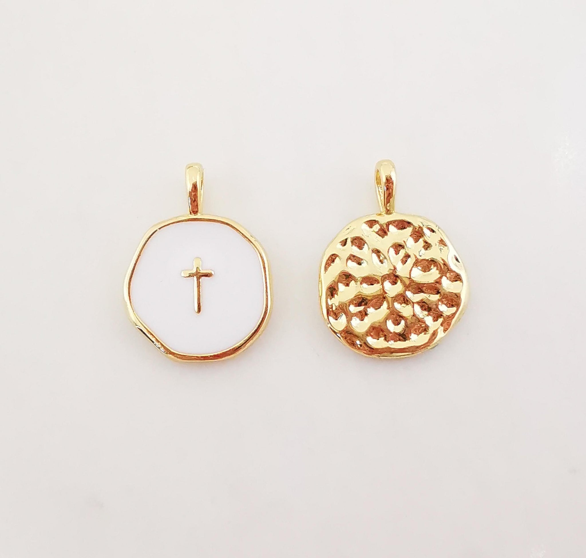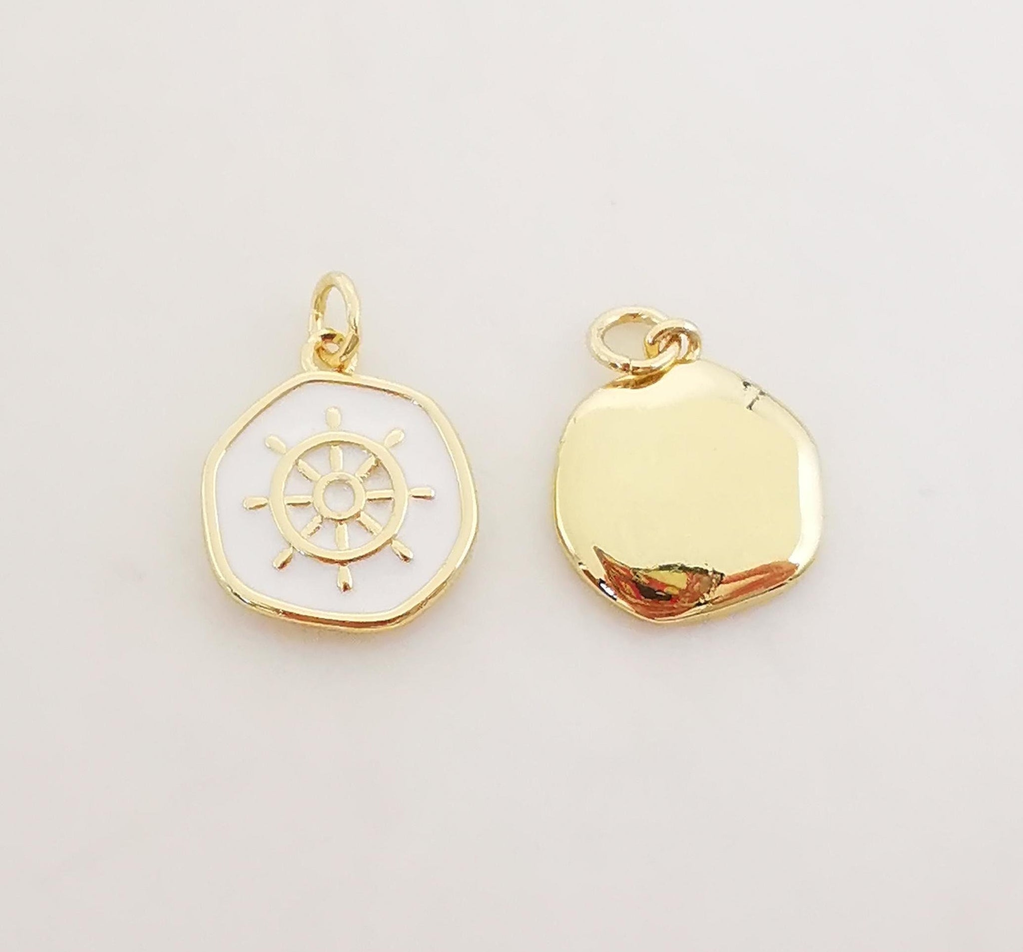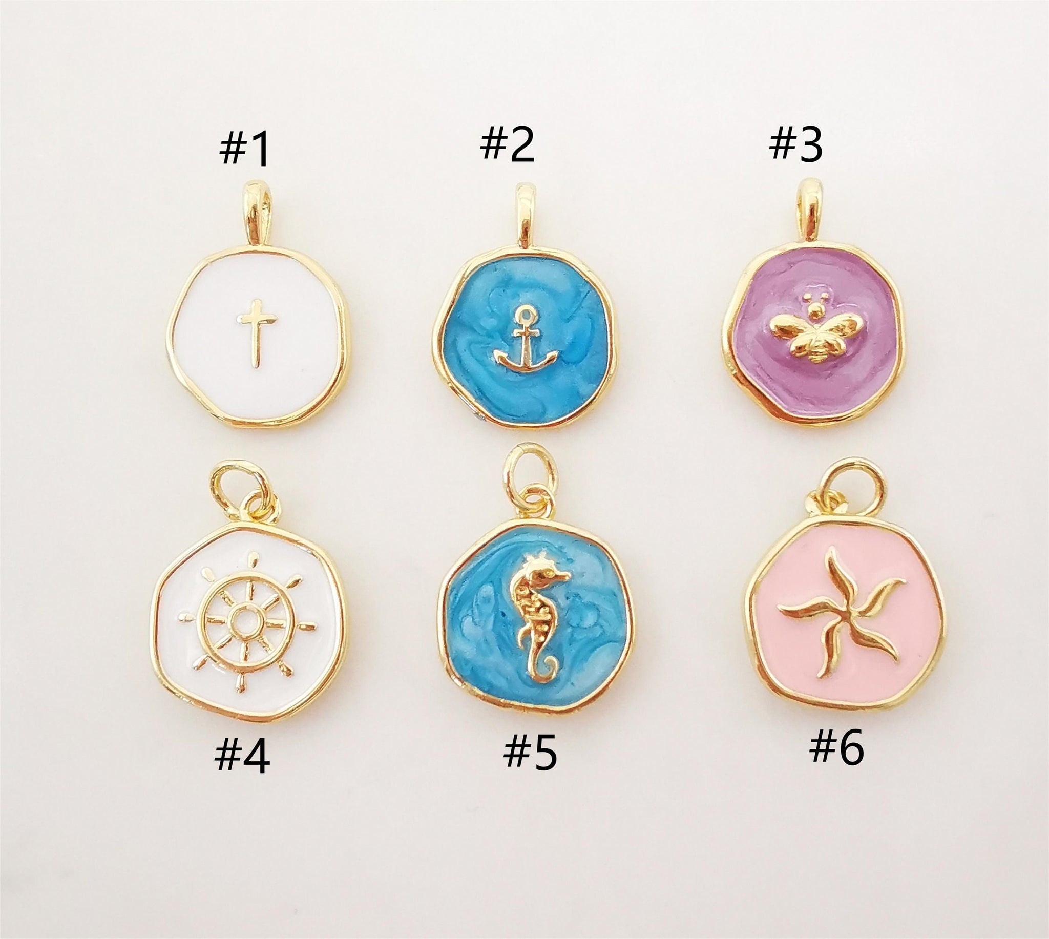 Dije de moneda redonda de esmalte multicolor, chapado en oro de 18 quilates, con forma de cruz, ancla, abejas, timón y caballito de mar, 14 mm, ideal para collares y pulseras, S1076
