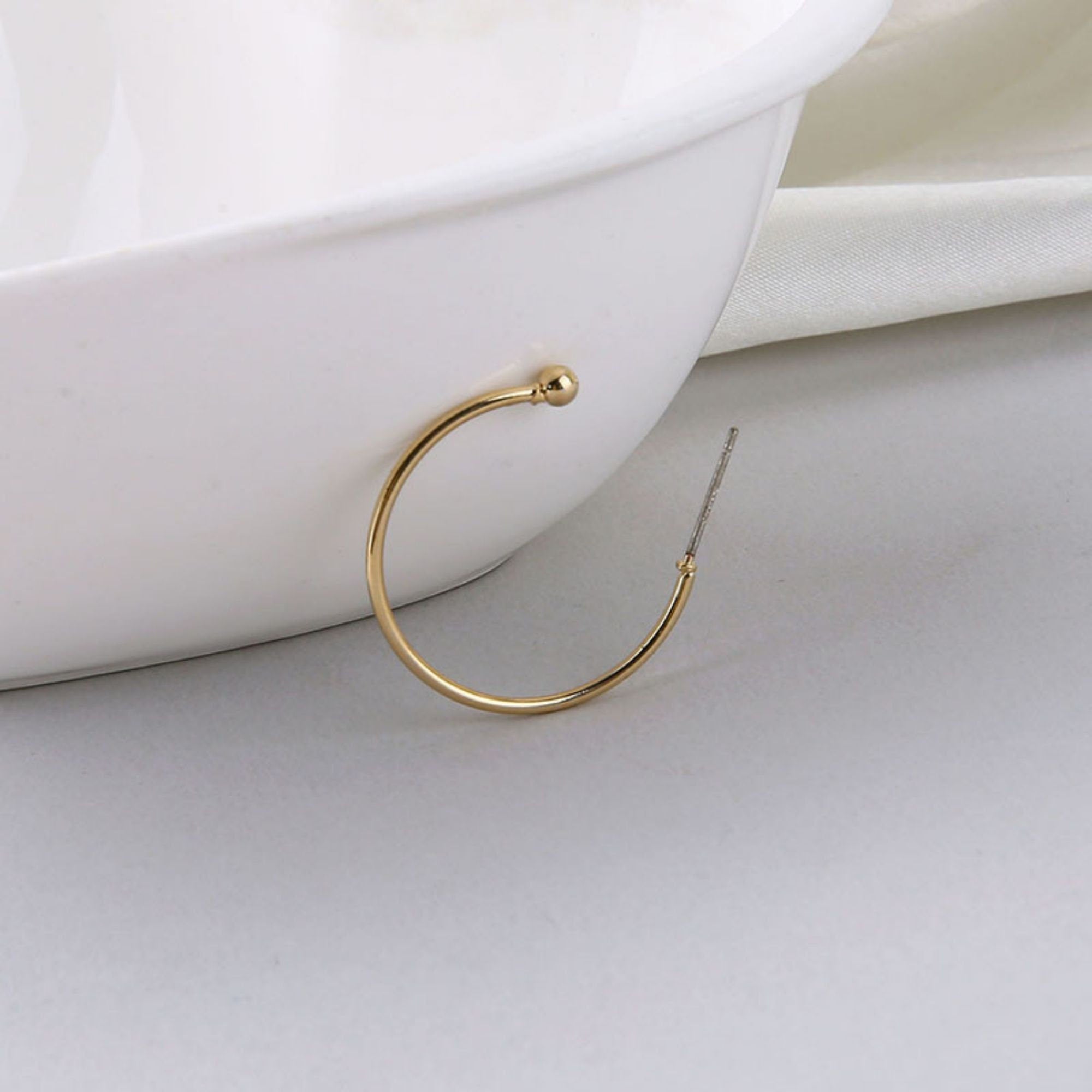 14K Gold Plated C Shape Hoop Earring, 15mm, 20mm, 25mm, 35mm, S925 Silver Ear Pin, Huggie Hoops Earring Parts, Ball hoop earrings BY003