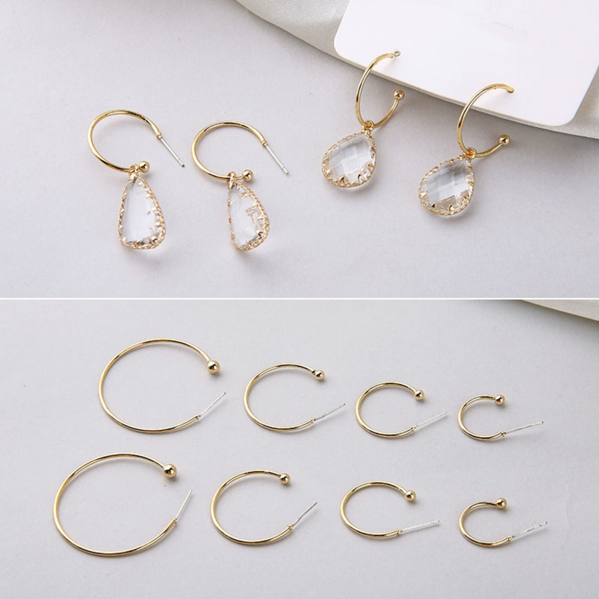 10pcs 14K Gold Plated C Shape Hoop Earring, 15mm, 20mm, 25mm, 35mm, S925 Silver Ear Pin, Huggie Hoops Earring BY003-ZX7004