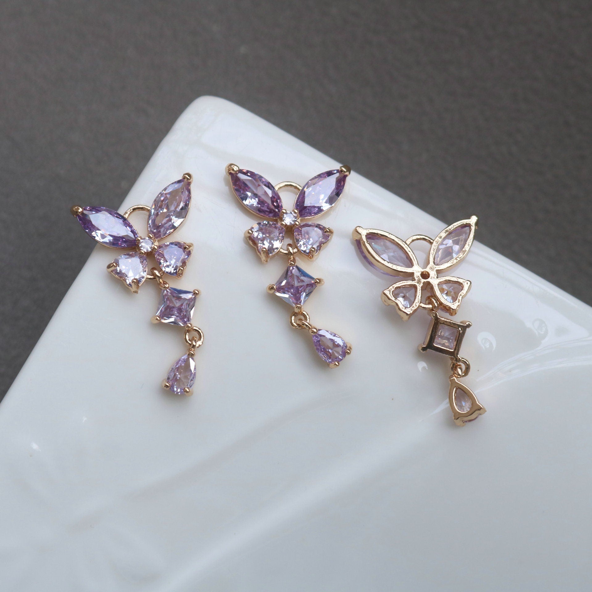 10pcs Butterfly drop Pendant, Cubic Zircon Crystal Pendant, Bracelet Necklace Pendant, 14K Real Gold Plated, Jewelry Findings HL118