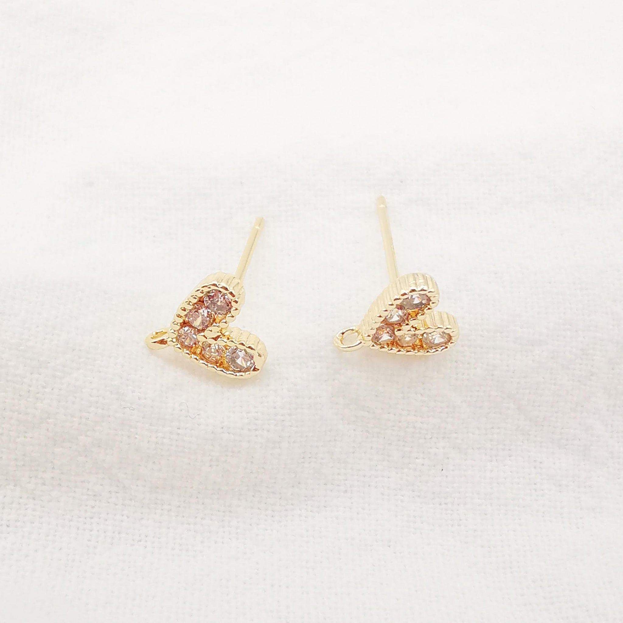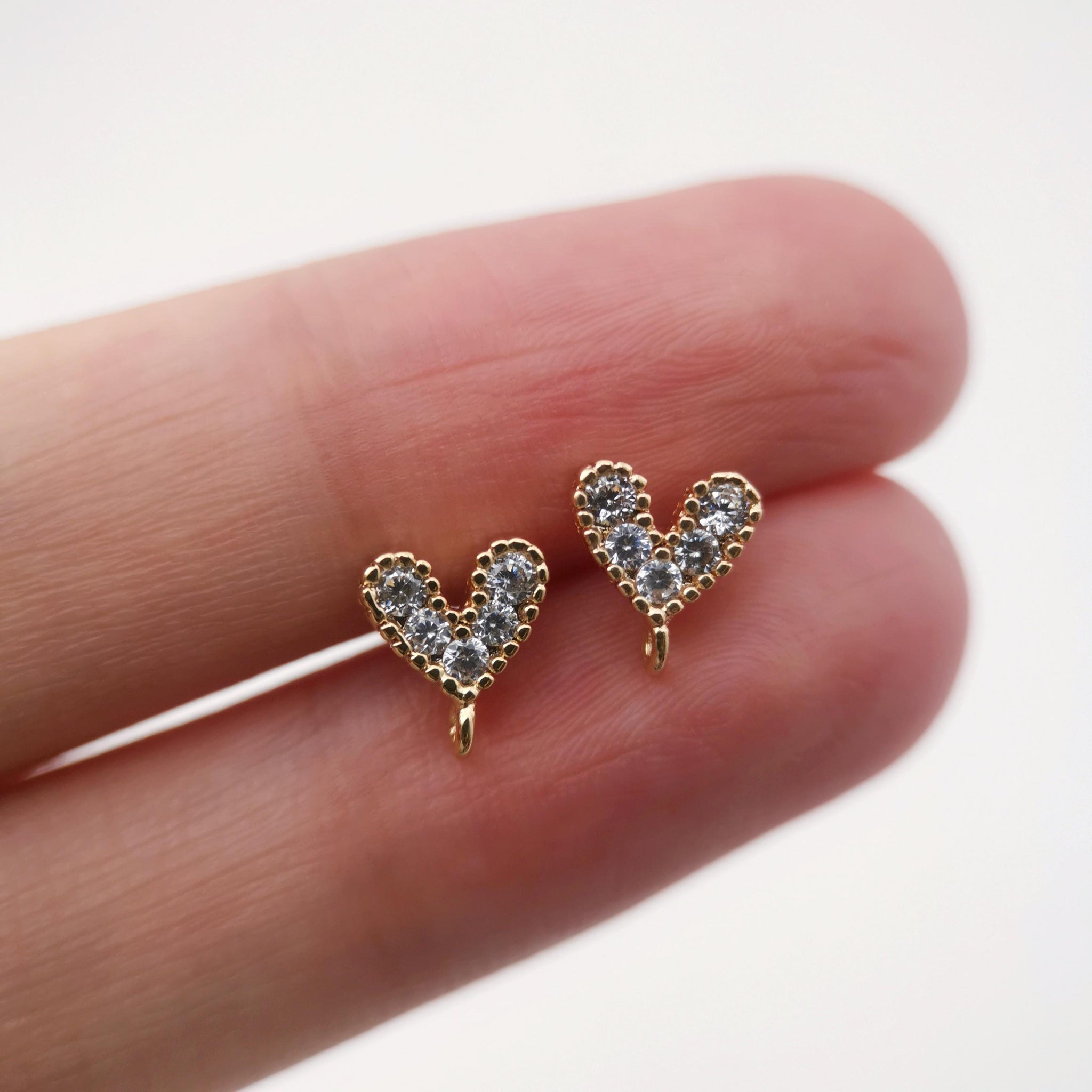 10PCS Cubic Heart Earring Post, Dainty 14K Gold Plated Brass Stud Earring With Loop, S925 Silver Ear Pin,Ear Post,Earring Finding Z056/bb012