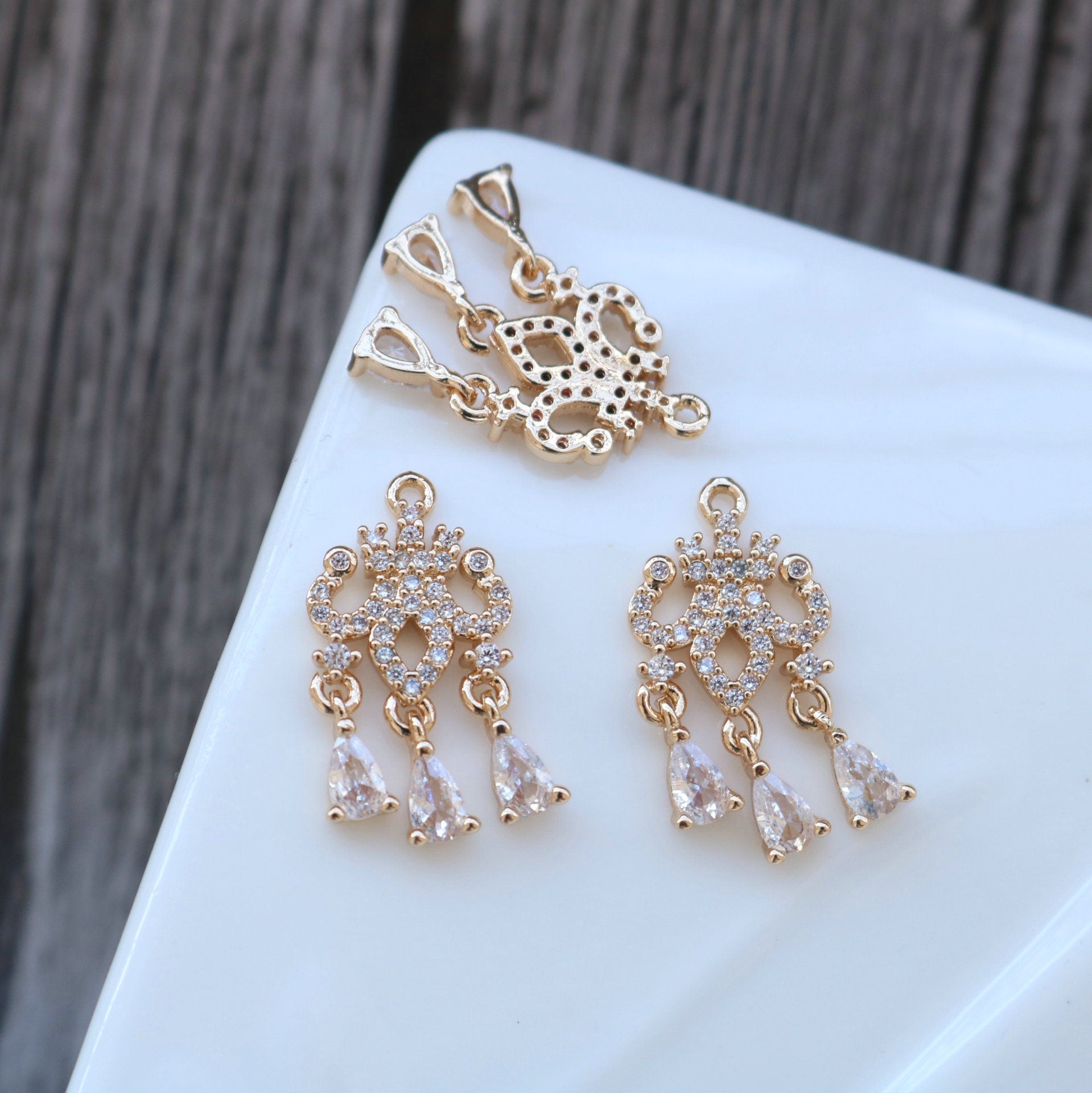 10pcs Dream Net Charm, Cubic Zircon Bow Pendant, Drop CZ Earring Charms, Real Gold Plated Brass Earring Charms, Jewelry Findings HL097