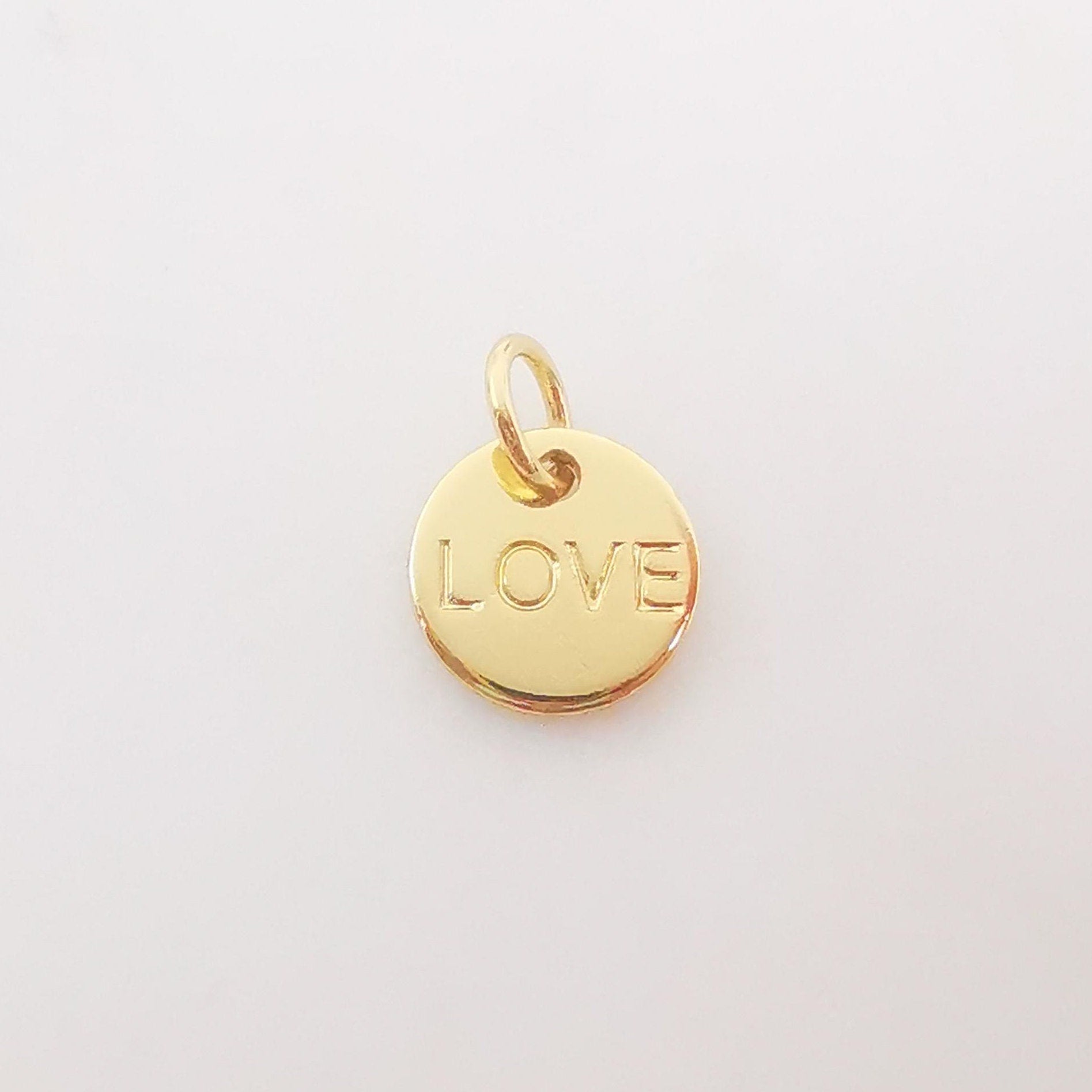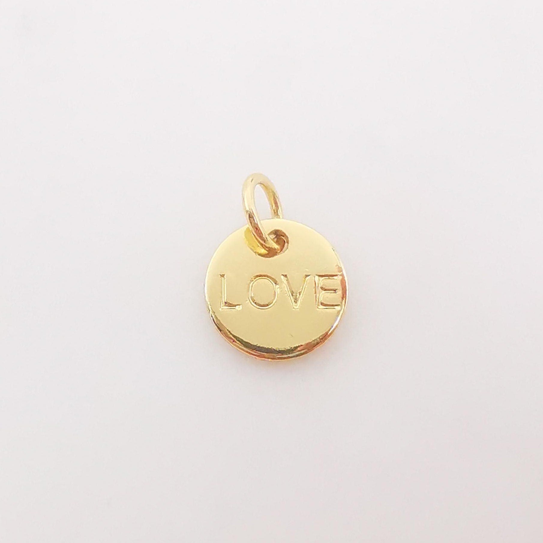 10PCS Gold Love Charms, 18K shiny Gold Plated Love Pendant, Tiny Round Pendant, Necklace Making Charms, Jewelry Findings S331