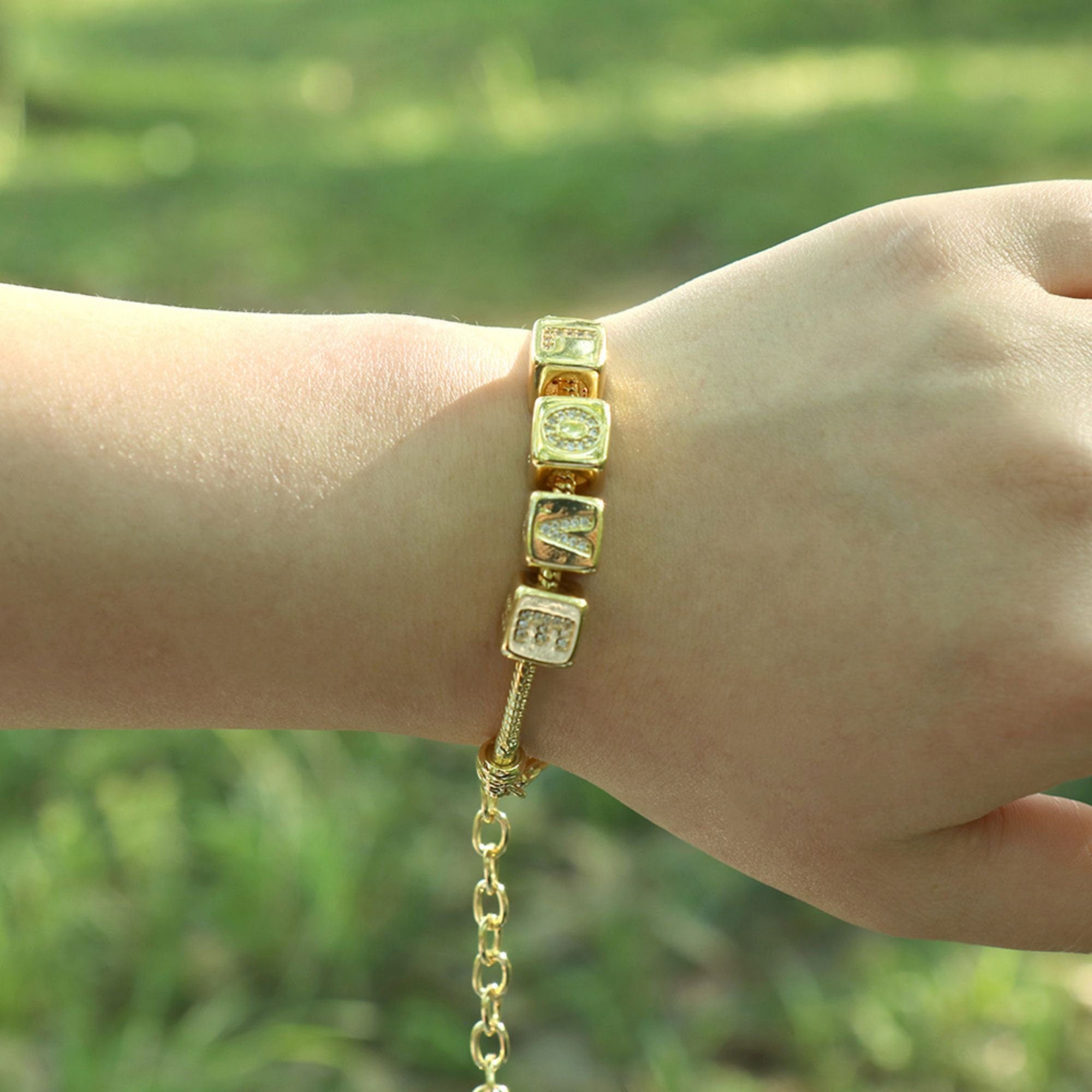 18K Shiny Gold Cube Alphabet Beads, Initial Square Beads, Micro CZ Pave, 9x9mm, Big Hole Inital Beads for Necklace Bracelet S909