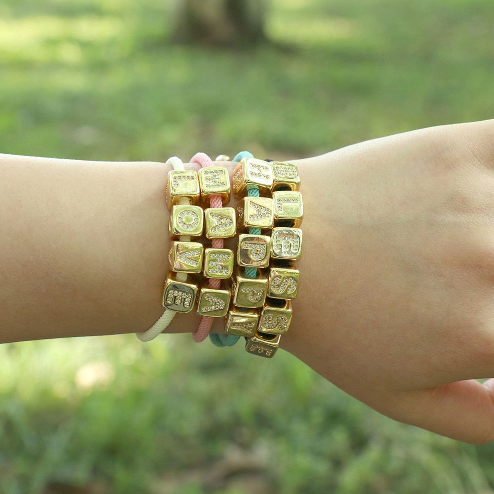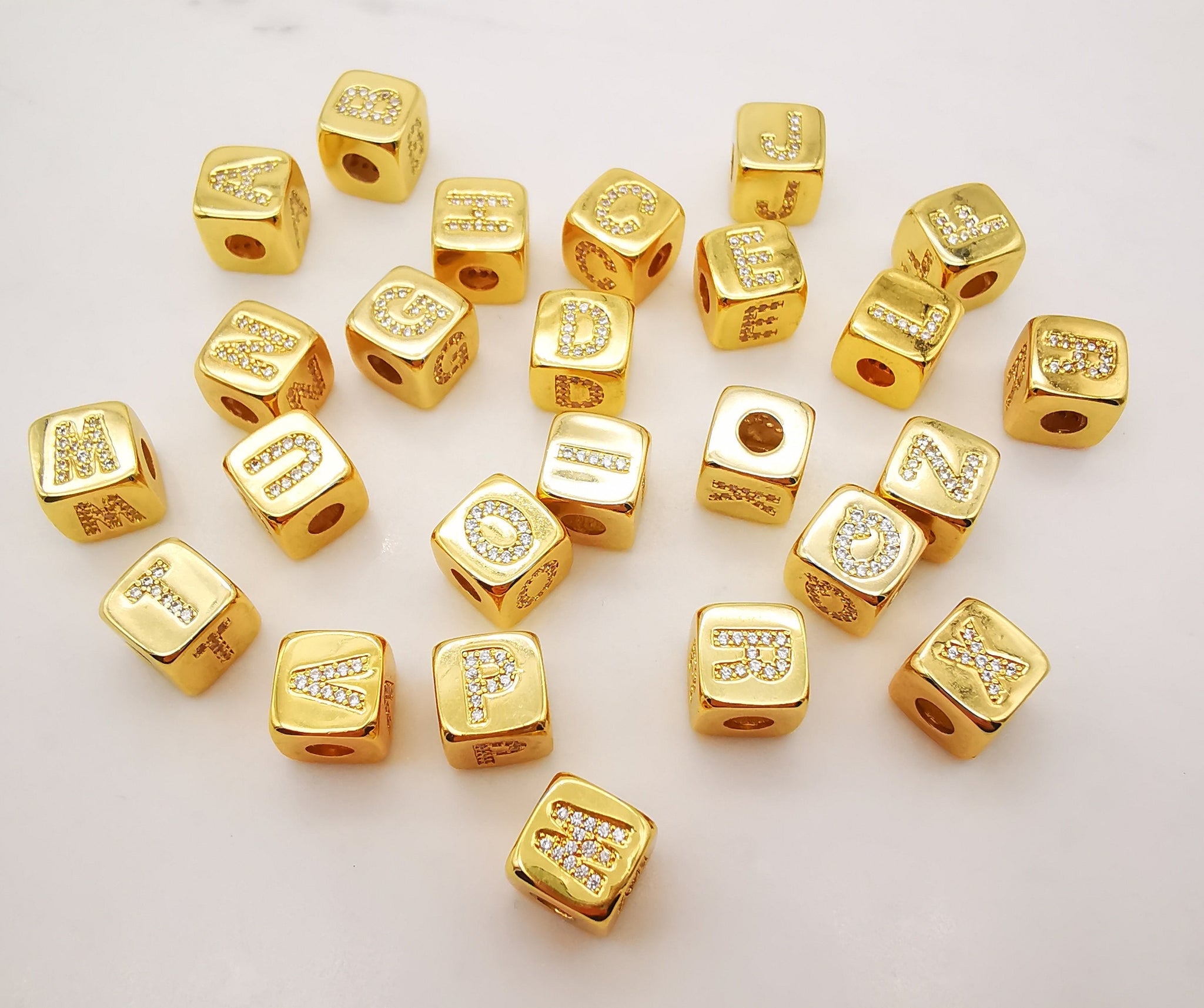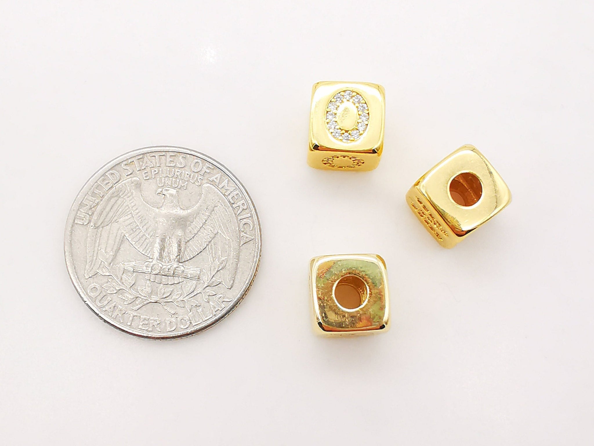 More Initial:https://www.etsy.com/shop/SasaCraftStore?ref=seller-platform-mcnav&search_query=Initial18K Shiny Gold Cube Alphabet Beads, Initial Square Beads, Micro CZ Pave, 9x9mm, Big Hole...
