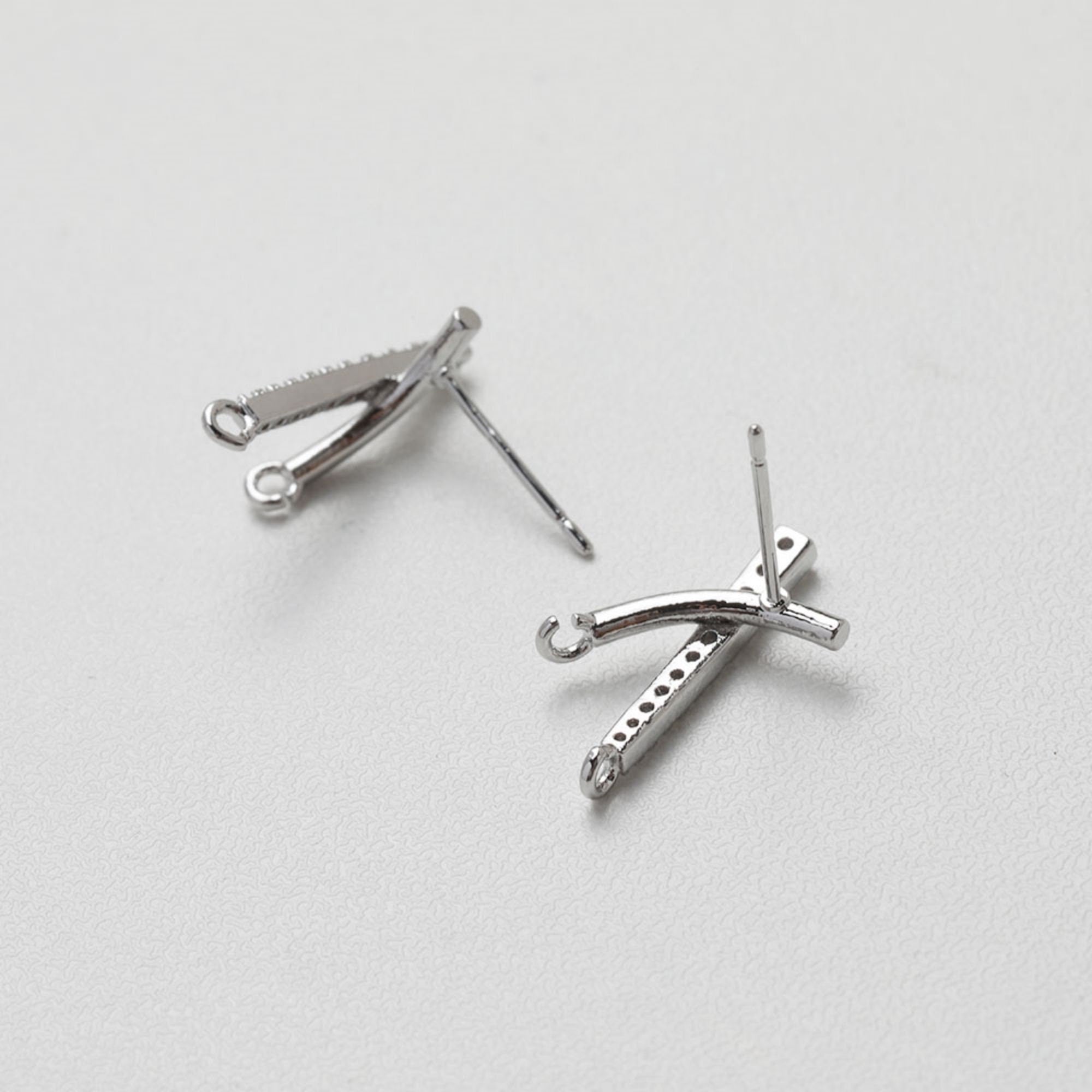 Cubic Crossover Post with Loop, S925 Silver Ear Pin Nickel Free Earring, Gold/Silver Cross Ear Stud, Hypoallergenic Earring Finding GT023