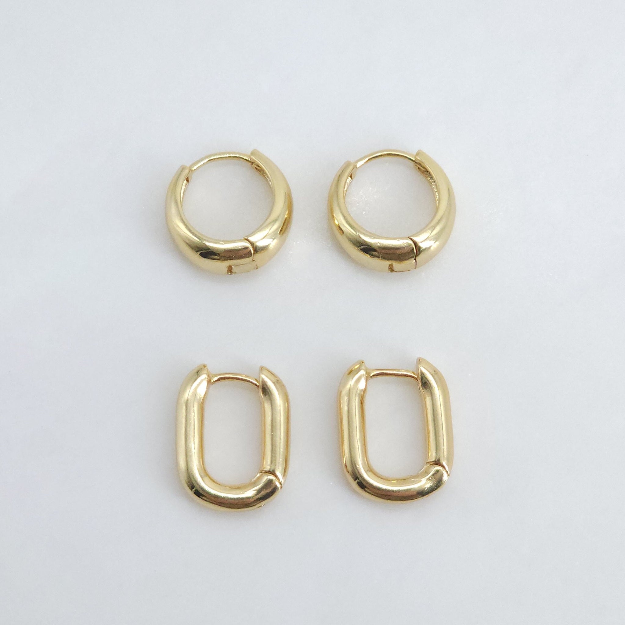 Gold Ear Hoops, C Shape, Round, U Shape, 18K Gold Plated Leverback Earrings, Huggie Hoops Earring S20388-D0574