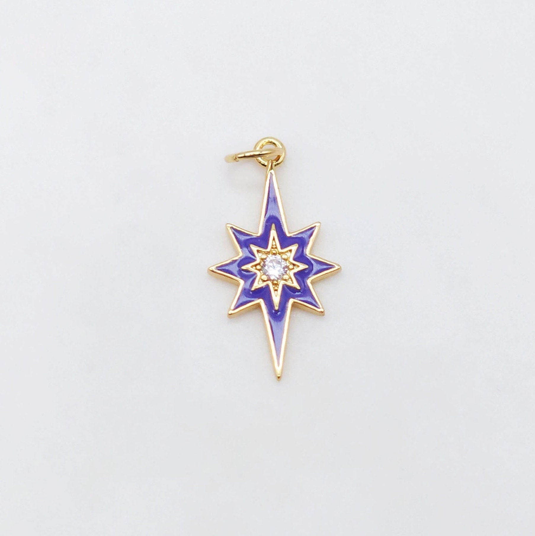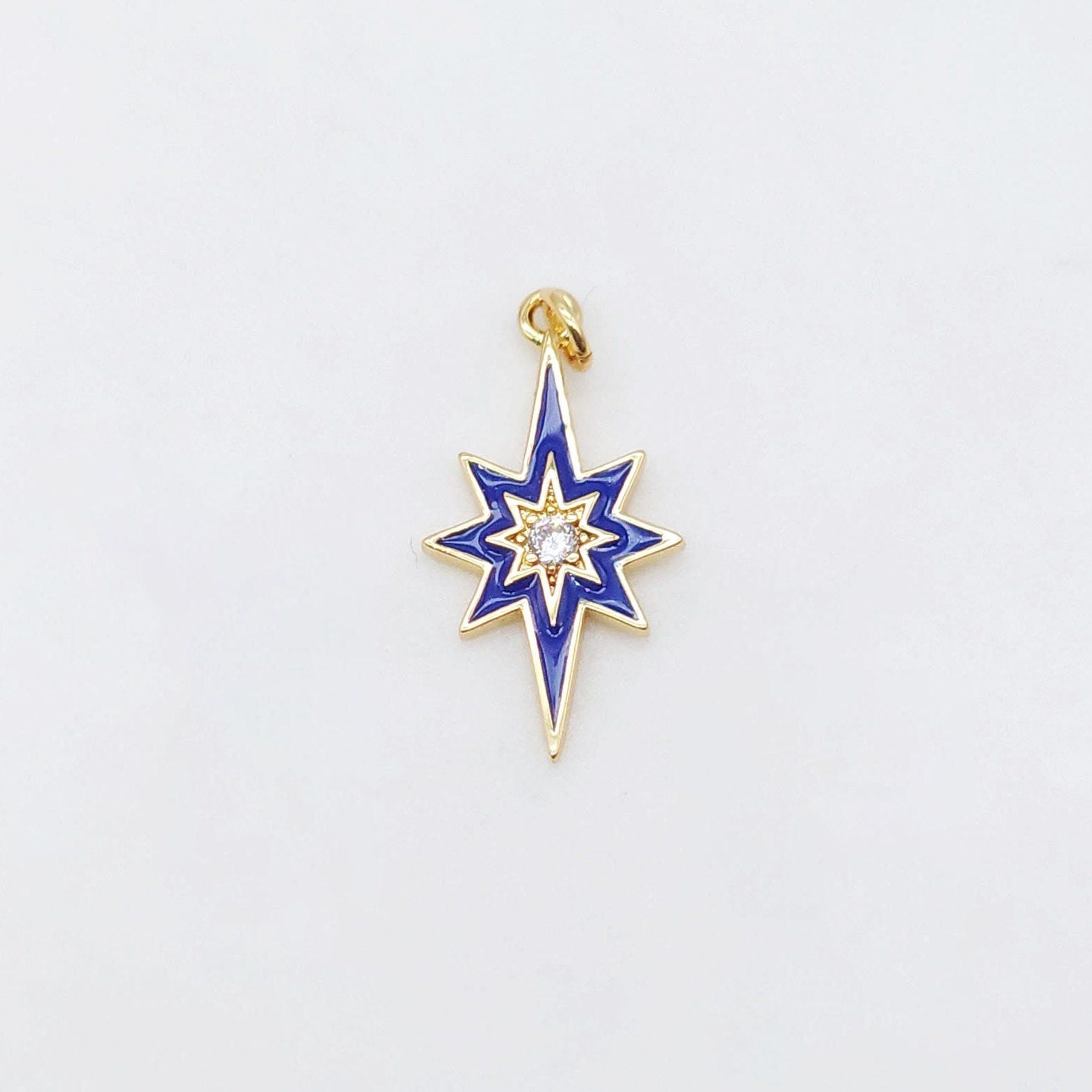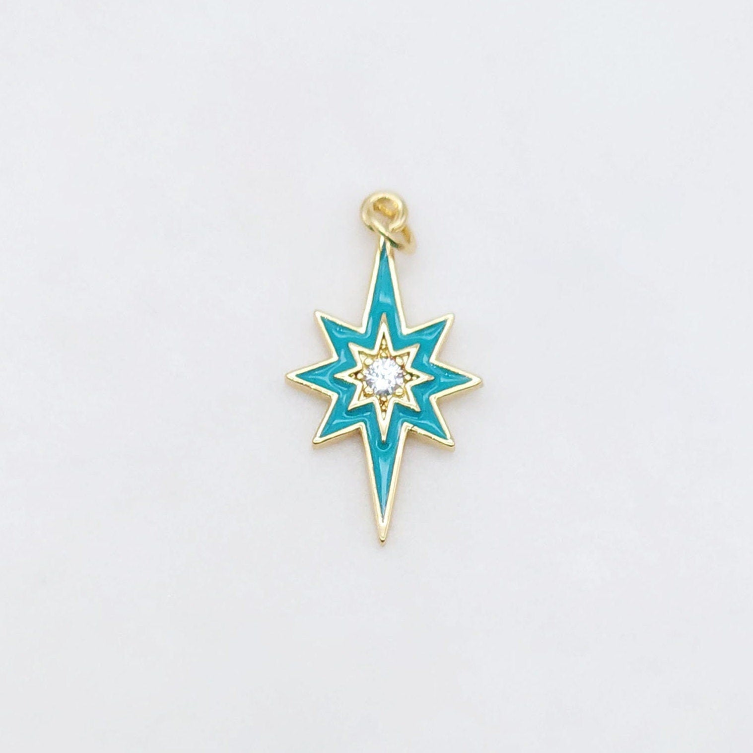 Multicolor Enamel Star Charm, 18K Gold Plated Star Pendant, 21mm, Necklace Bracelet Making Pendant S20495