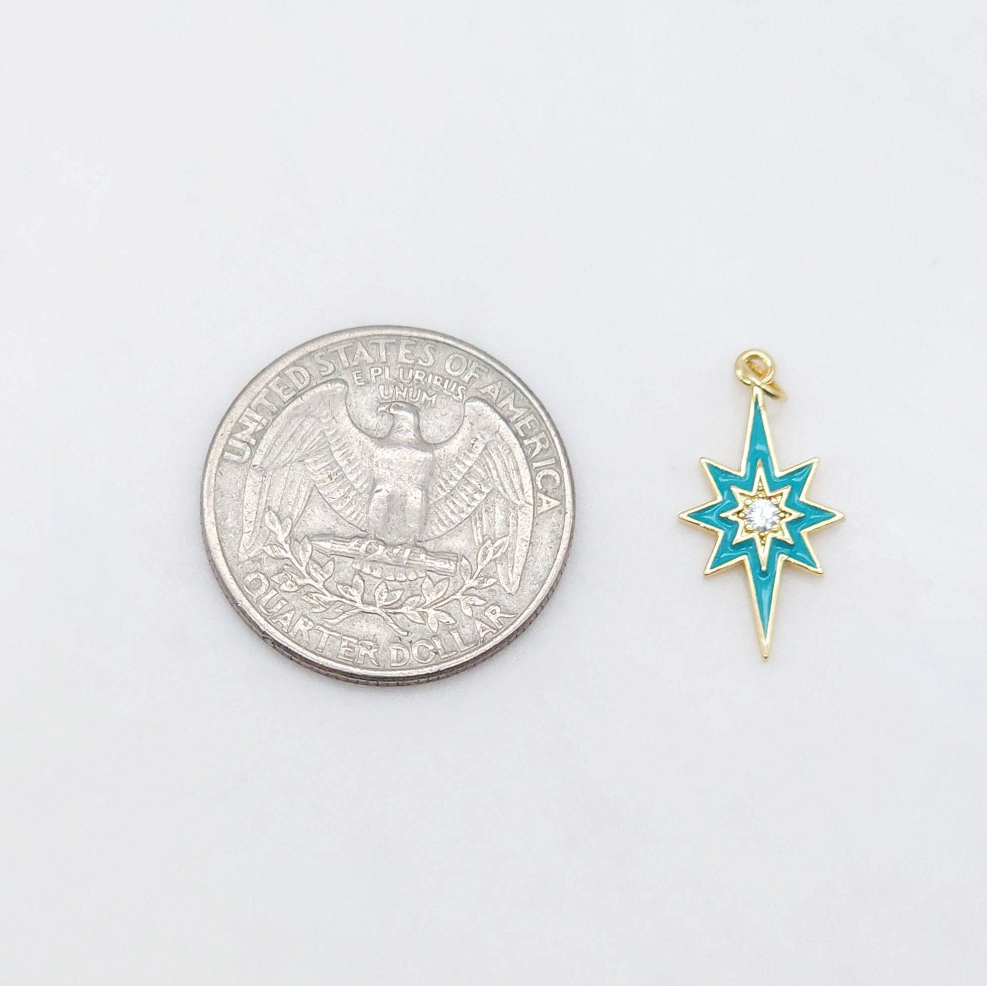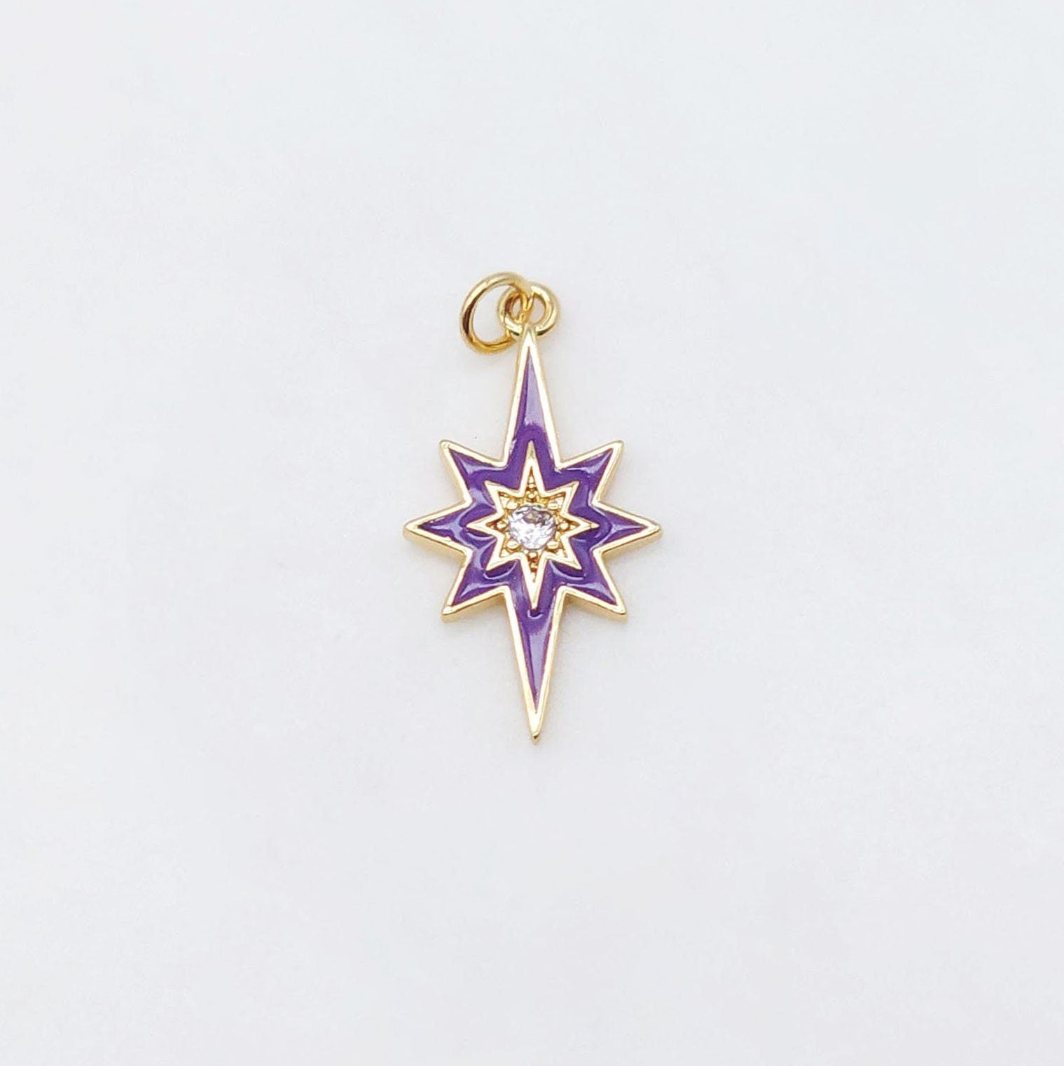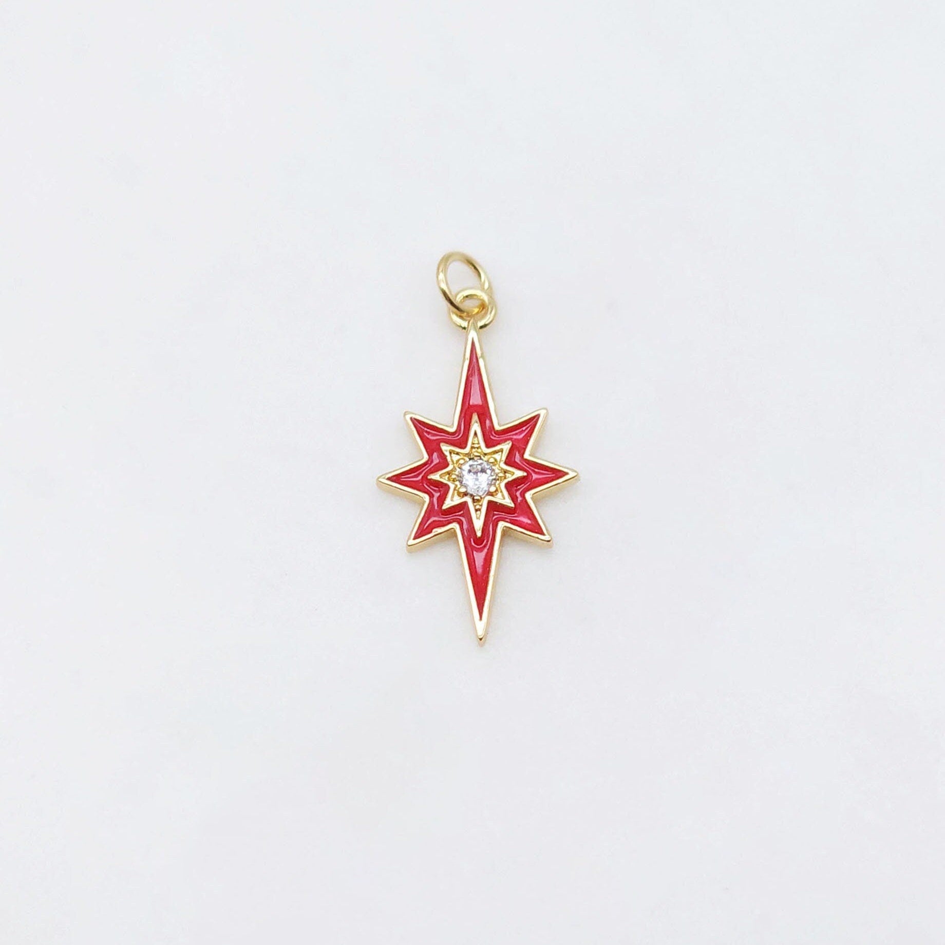 Multicolor Enamel Star Charm, 18K Gold Plated Star Pendant, 21mm, Necklace Bracelet Making Pendant S20495