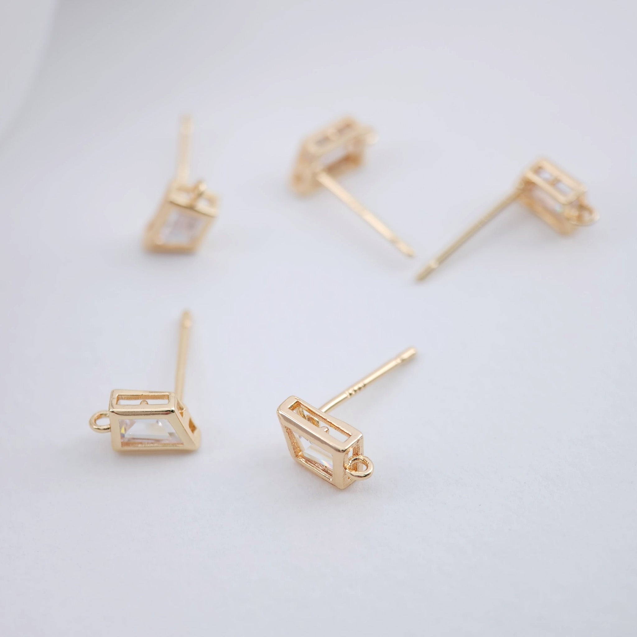 Trapezoid Earring Post Pave CZ, Real Gold Plated, S925 Silver Pin Nickel Free Earrings, Hypoallergenic Earring ZX231