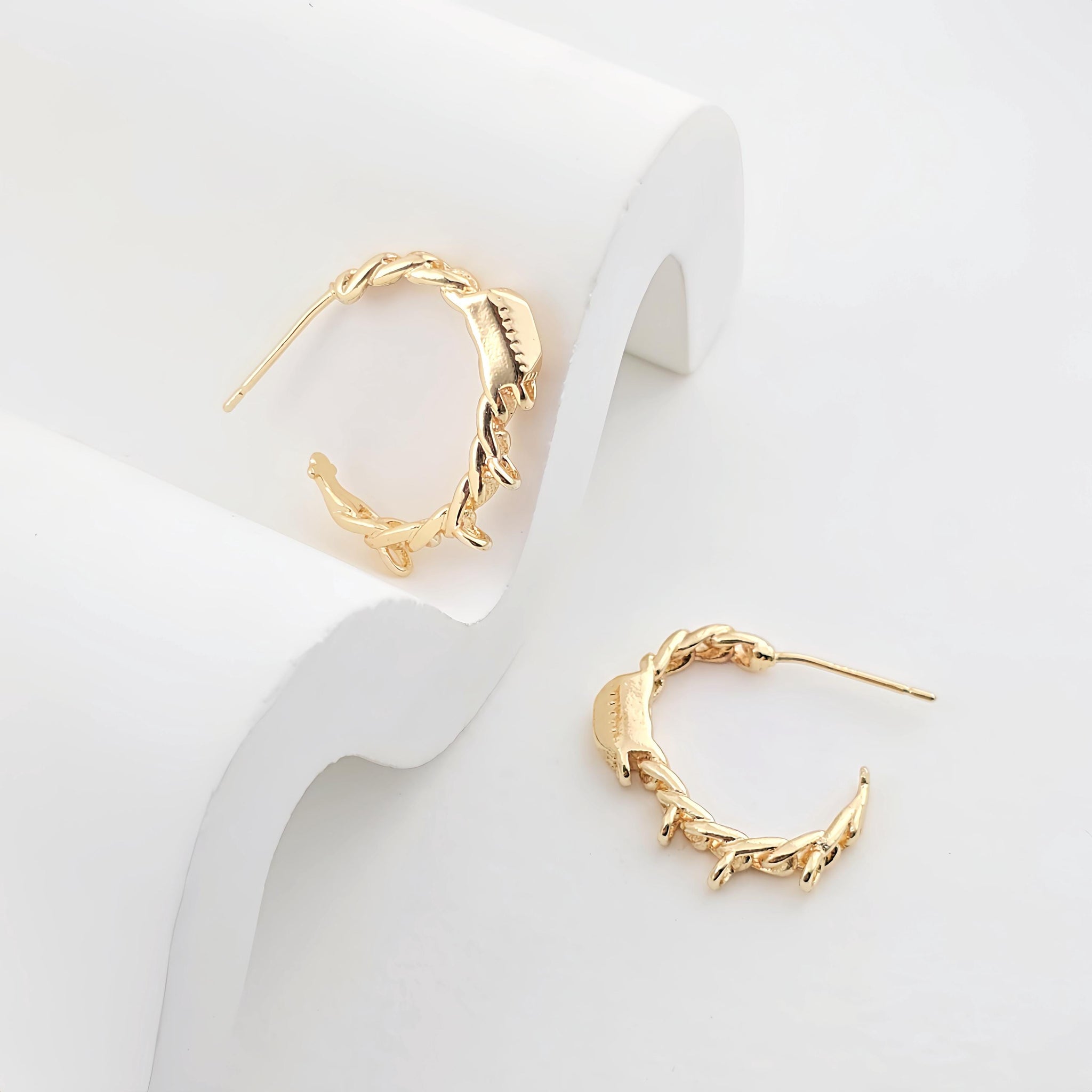 Twisted C Shape Earrings Post With 3 Loops, 14K Gold Plated, S925 Silver Ear Pin Nickel Free Earrings, Earring Findings ZX288