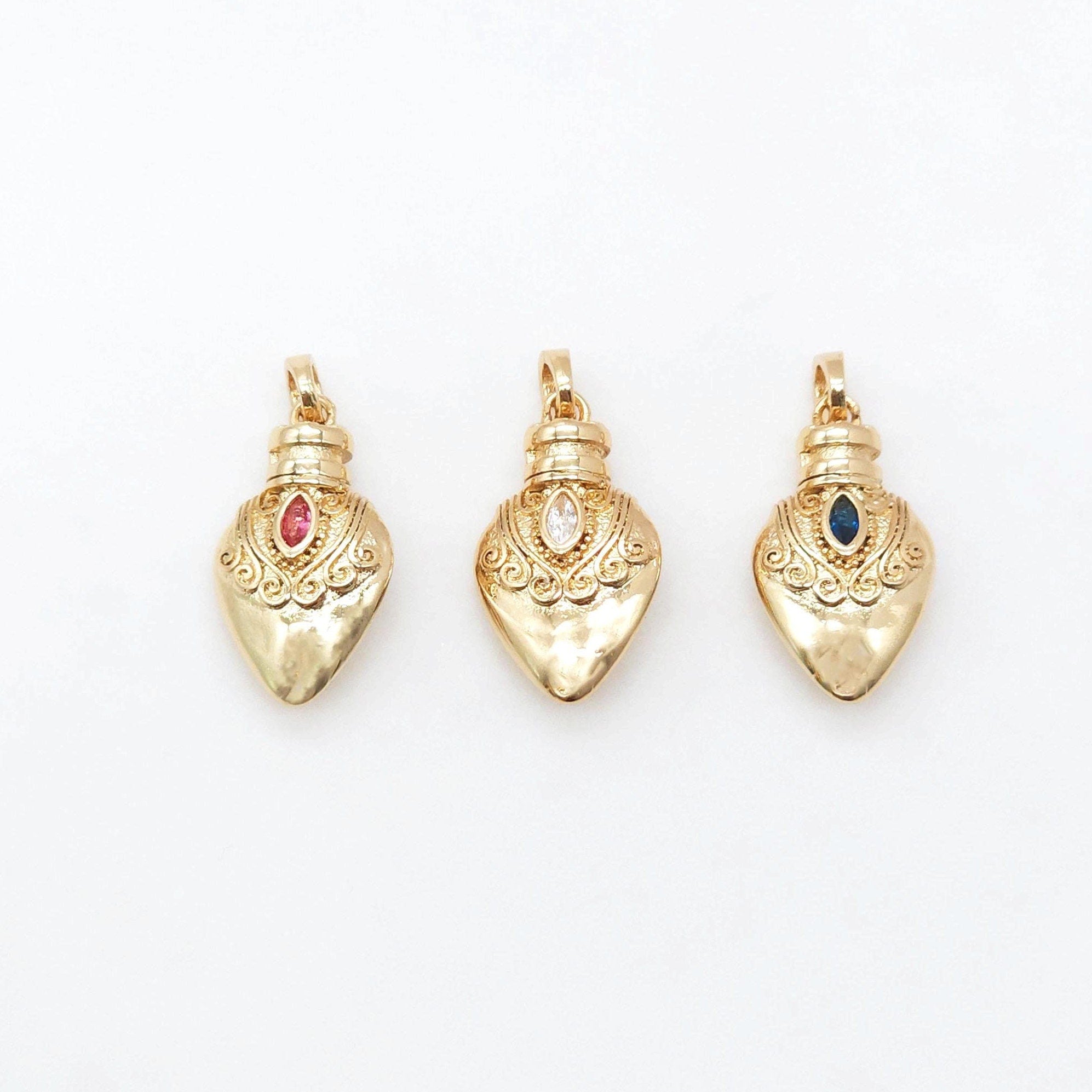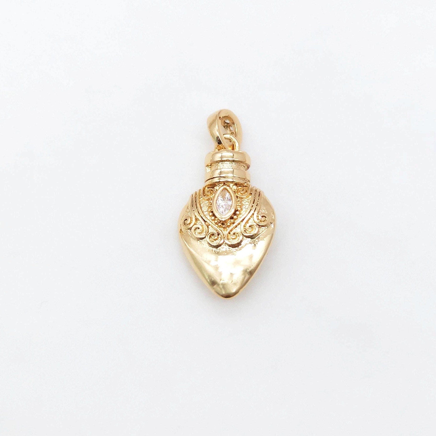 Vintage Gold Bottle Charms, 18K Real Gold Plated Pave CZ Bottle Pendants, Vintage Necklace Making Charms S20450